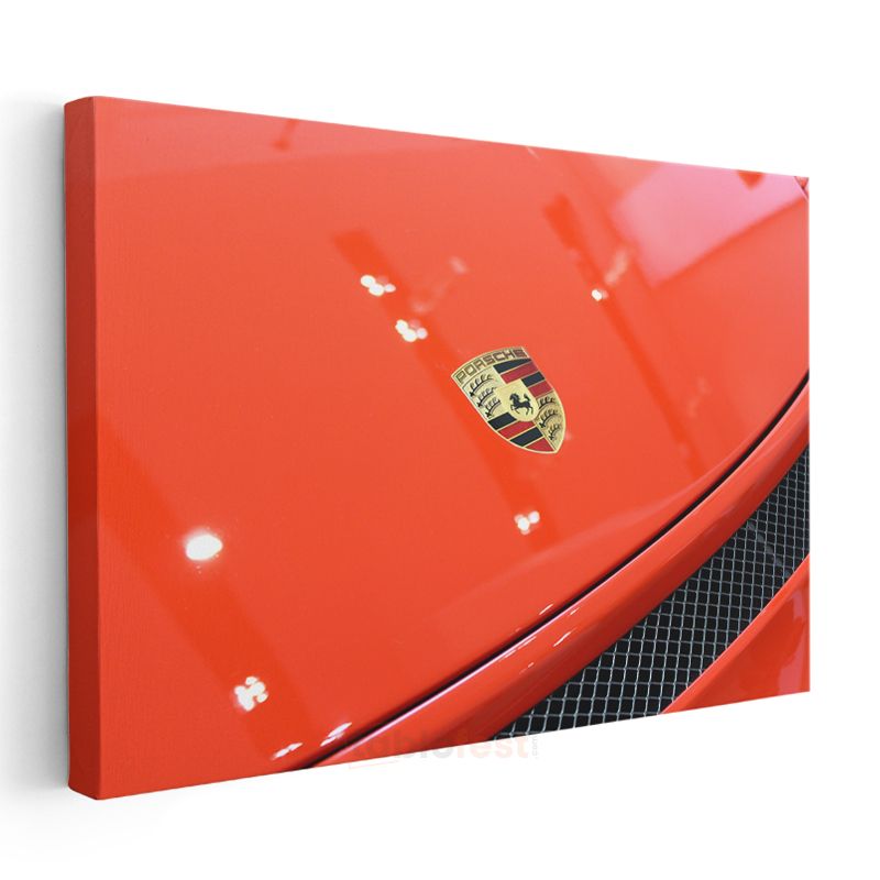 Porsche Amblemi - Kırmızı Spor Otomobil Detayı Kanvas Tablo