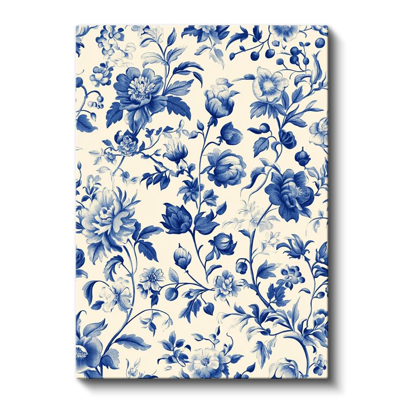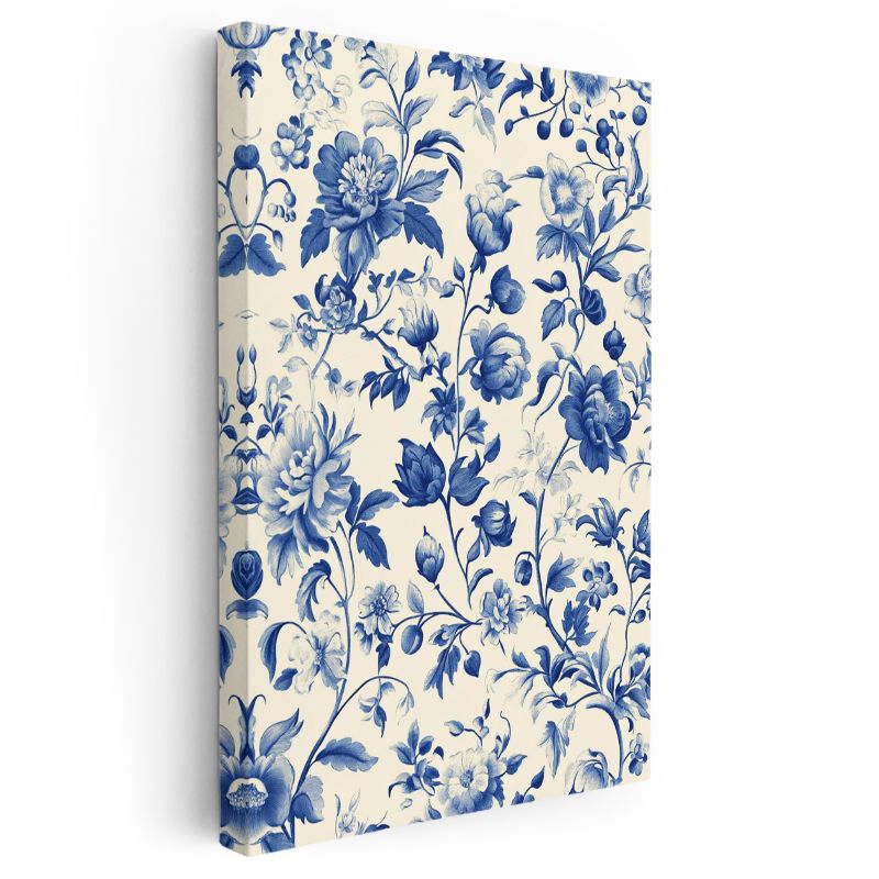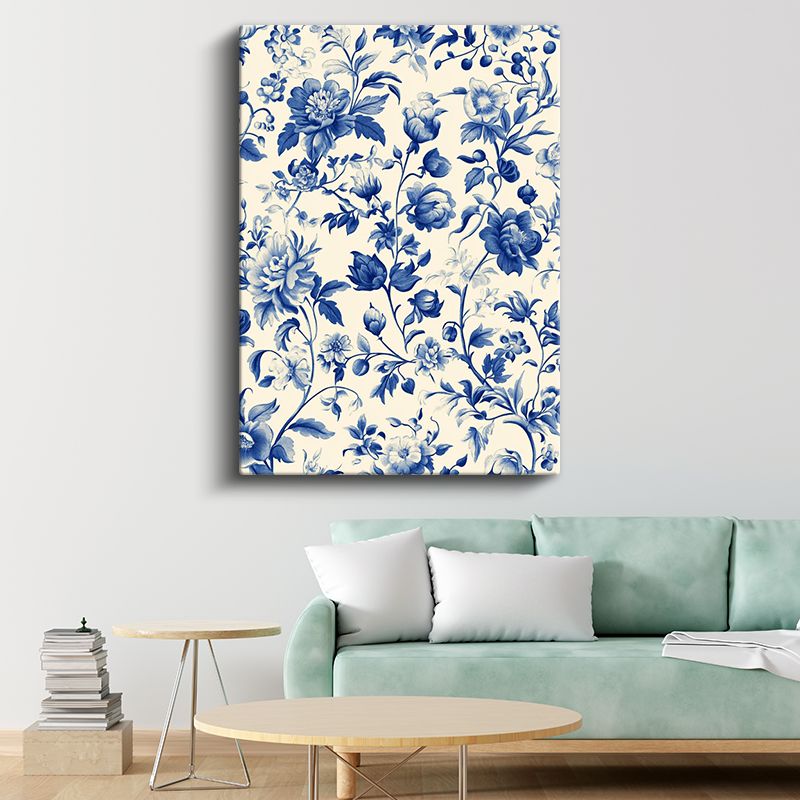 Porselen Çiçekler - Klasik Mavi Beyaz Çiçek Deseni Kanvas Tablo