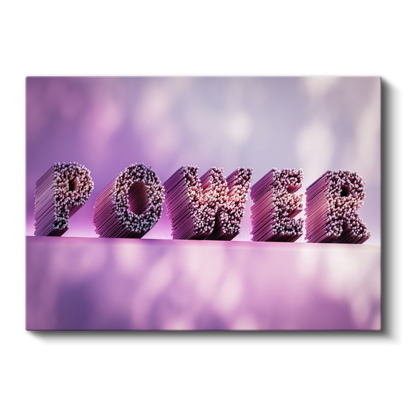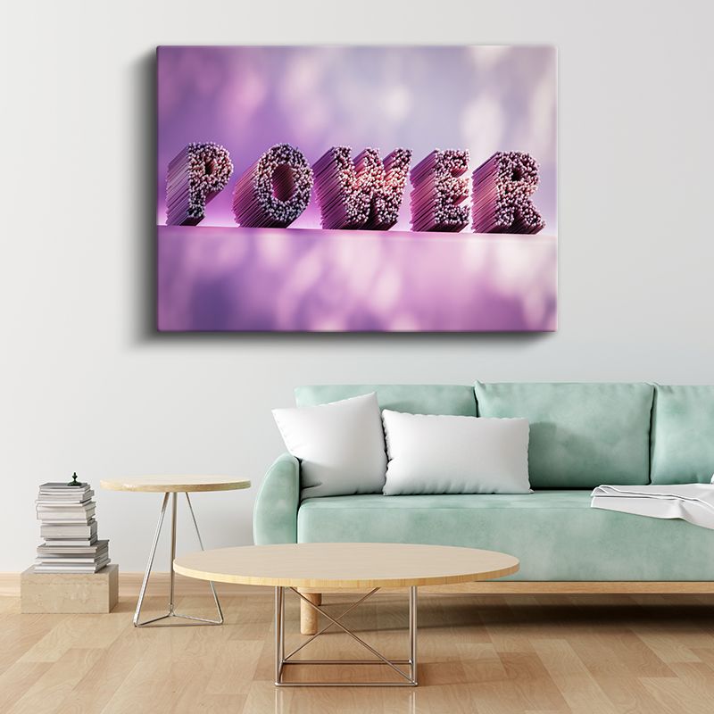 Power - Mor Tonlu 3D Tipografi Kanvas Tablo