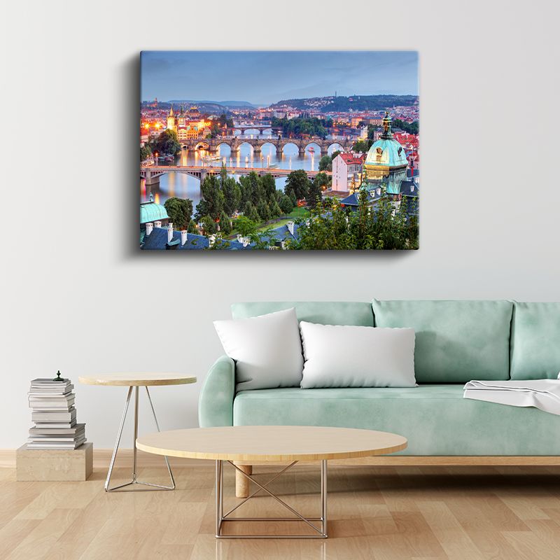 Prag Köprüleri - Nehir Üzerinde Tarihi Mimari Kanvas Tablo