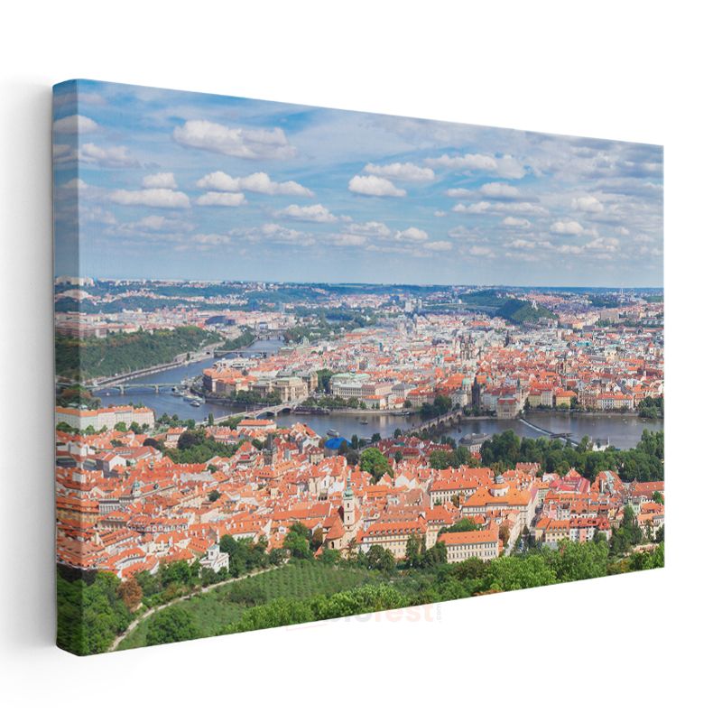 Prag Panoraması - Kırmızı Çatılı Şehir Manzarası Kanvas Tablo