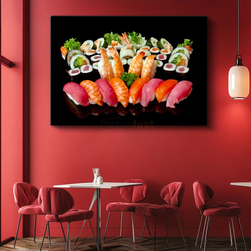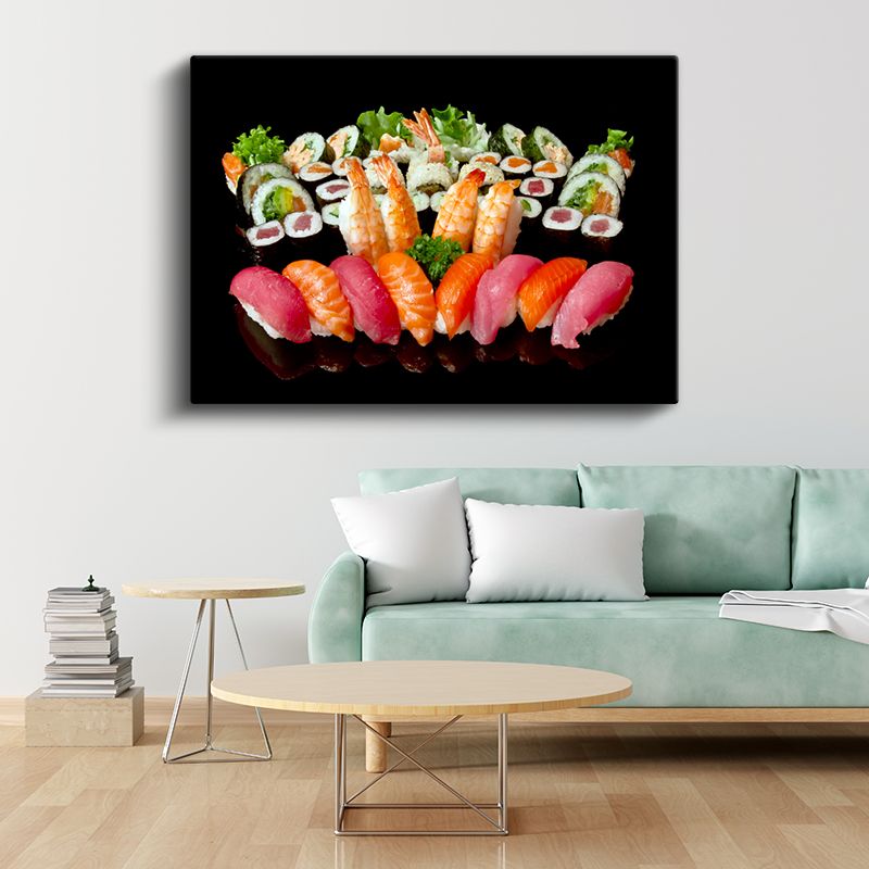 Premium Suşi Tabağı - Renkli Deniz Ürünleri Şöleni Kanvas Tablo