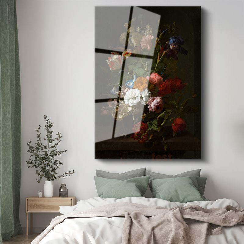 Rachel Ruysch - Çiçek Buketi Cam Tablo