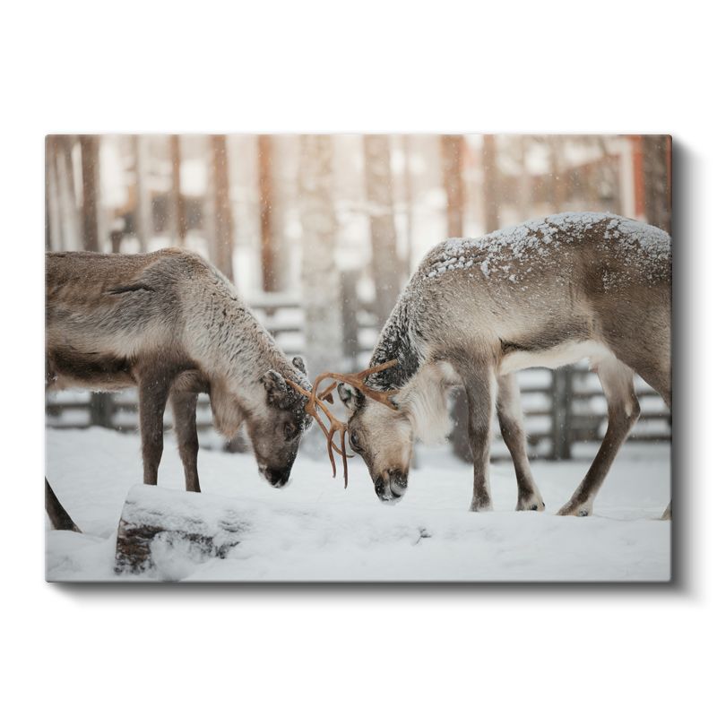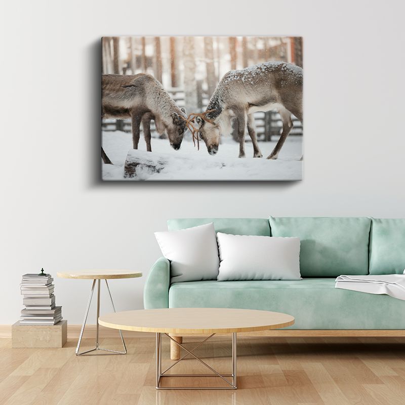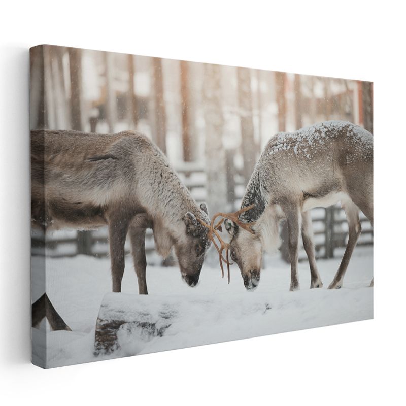 Ren Geyikleri - Karlı Zeminde Güç Gösterisi Kanvas Tablo