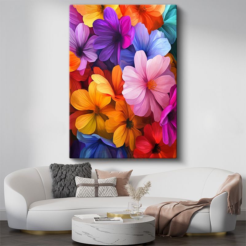 Renk Cümbüşü Çiçekler - Canlı Kozmoslar Kanvas Tablo