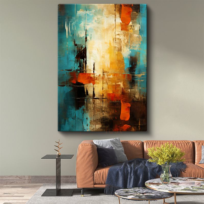 Renk Katmanları - Turkuaz ve Turuncu Dokulu Soyut Kanvas Tablo