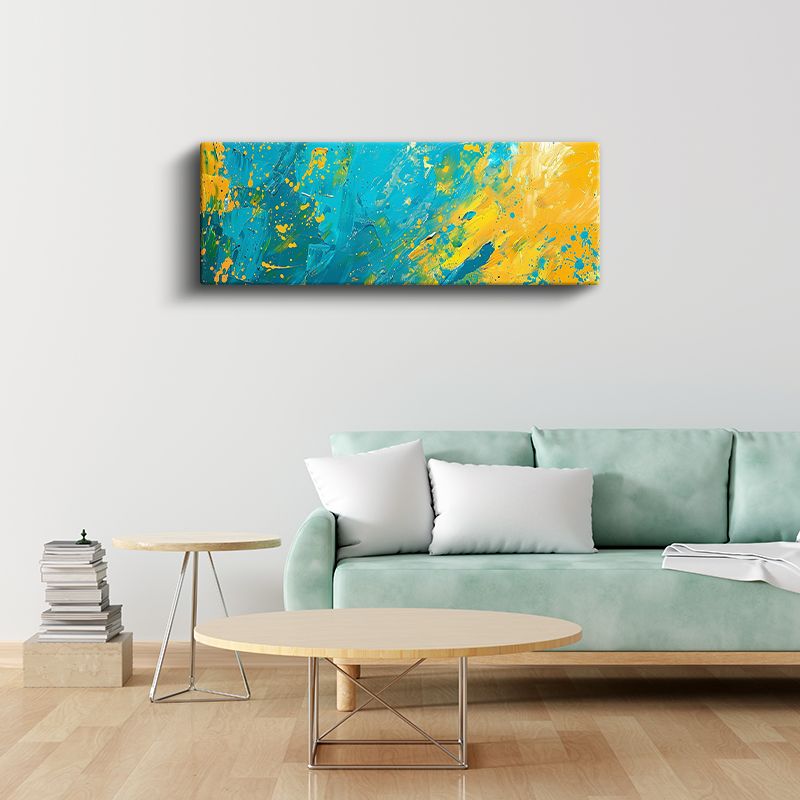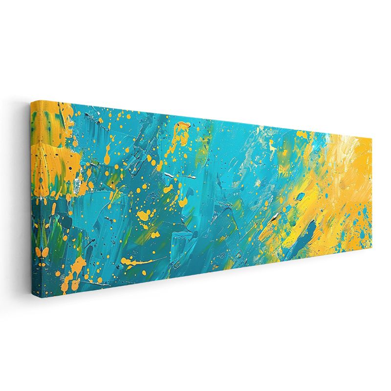 Renk Patlaması - Turkuaz ve Sarı Sıçramalar Kanvas Tablo