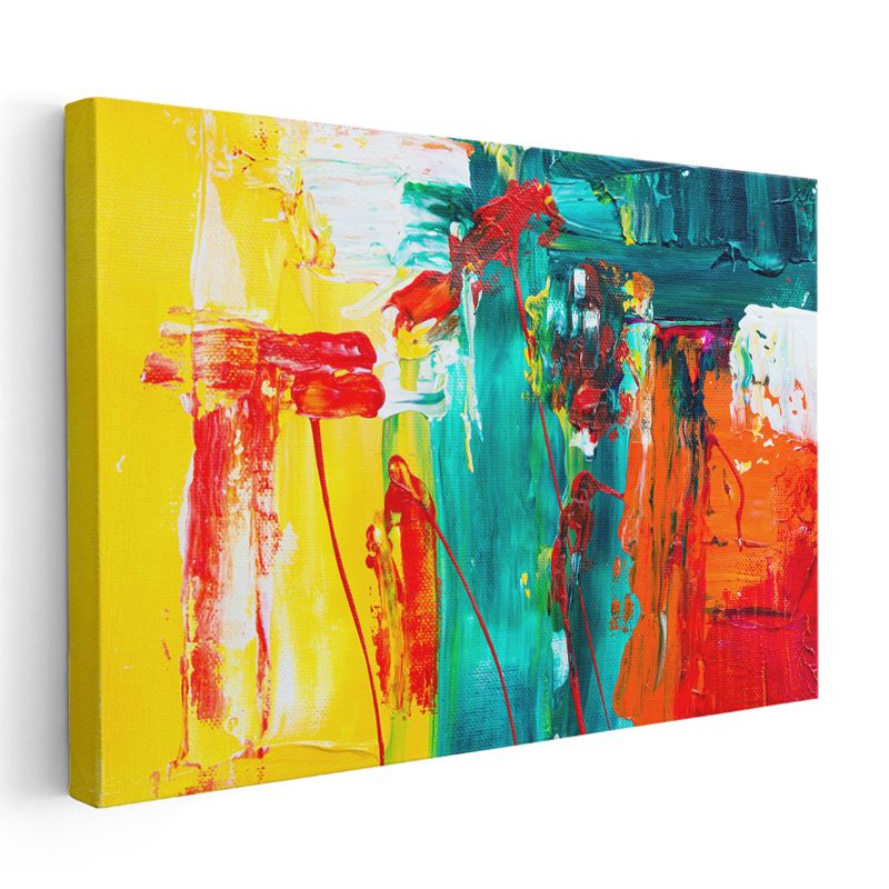 Renk Patlaması - Turkuaz ve Turuncu Soyut Kompozisyon Kanvas Tablo