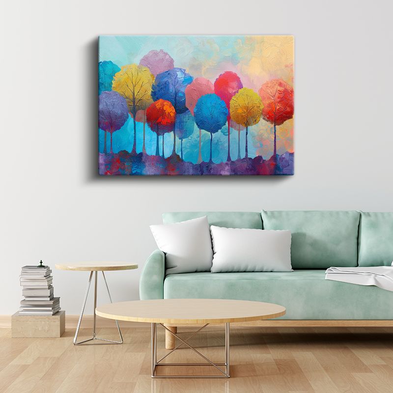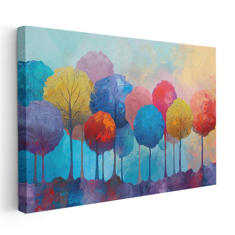 Renkli Ağaçlar - Soyut Dekoratif Kanvas Tablo