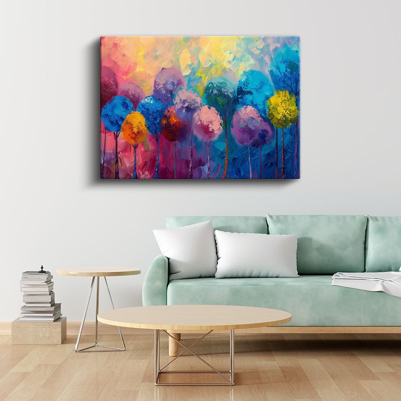 Renkli Ağaçlar - Soyut Sanat Eseri Kanvas Tablo
