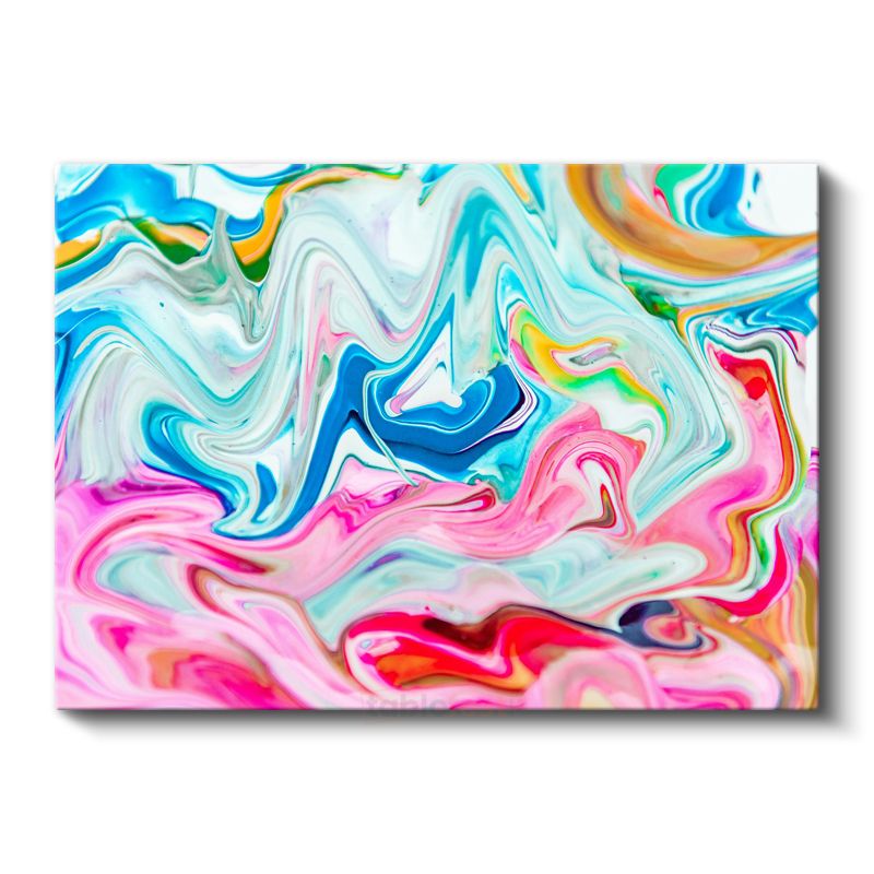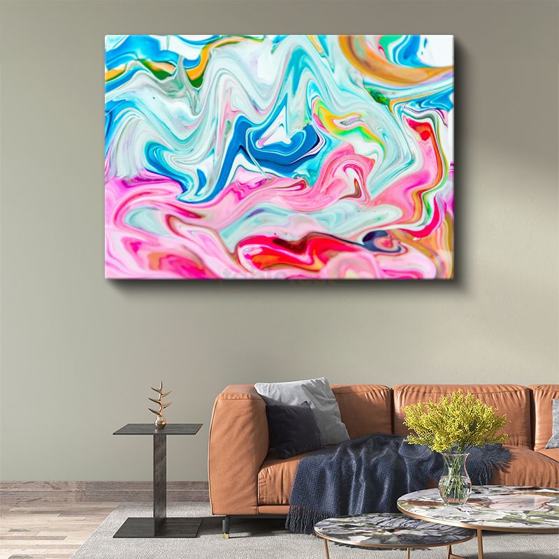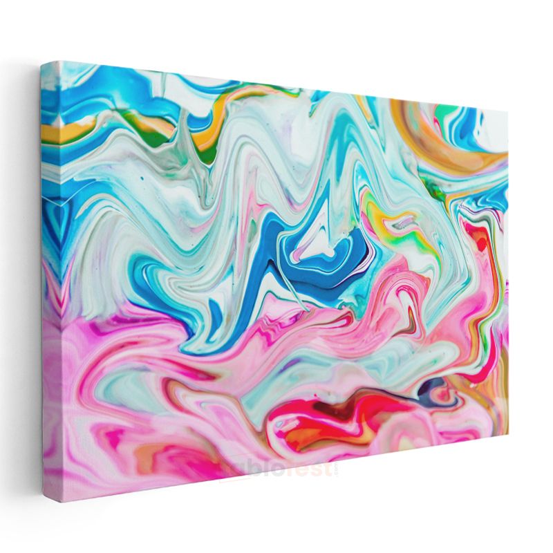 Renkli Akışkan Dalgalar - Mavi Pembe Mermer Efekti Kanvas Tablo