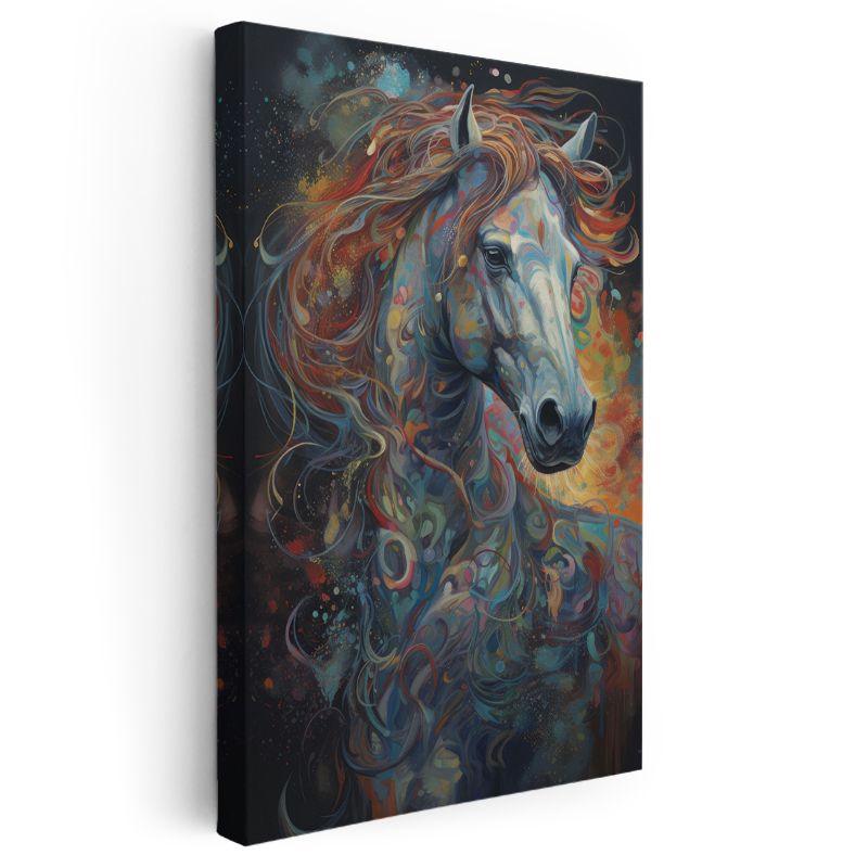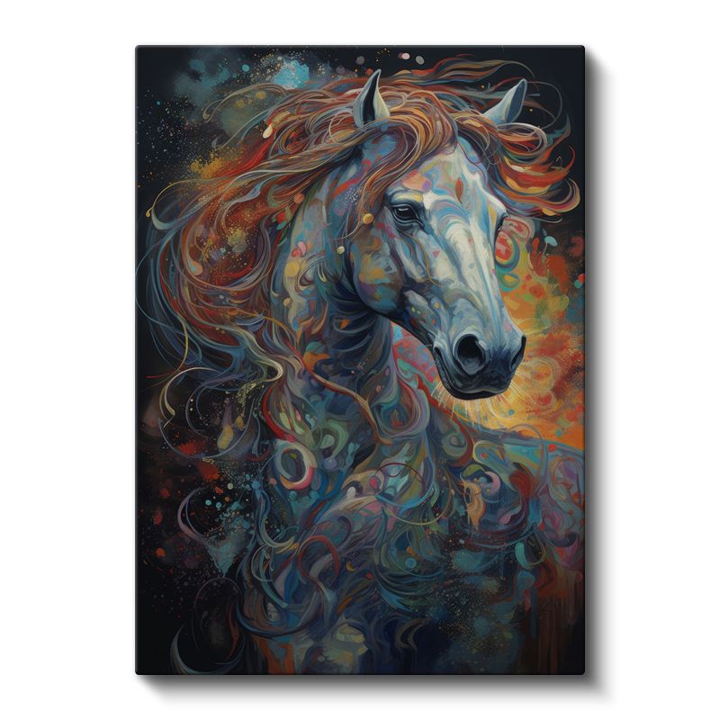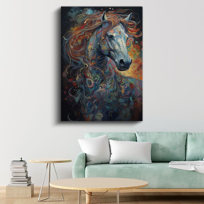 Renkli At - Sanatsal Renk Harmonisi Kanvas Tablo