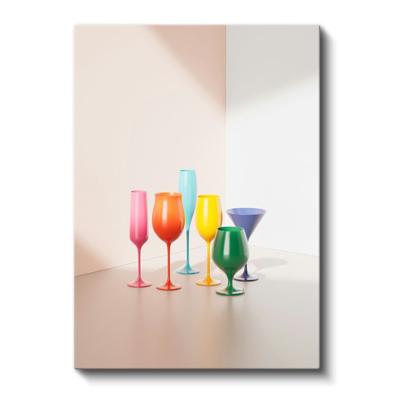 Renkli Bardaklar - Minimalist Kokteyl Koleksiyonu Kanvas Tablo