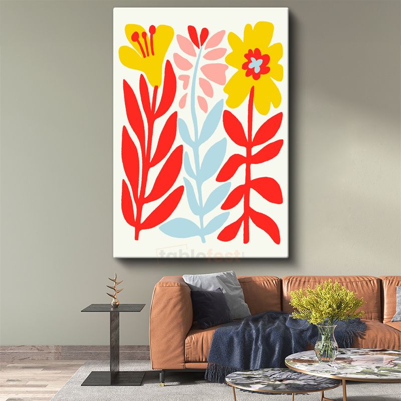 Renkli Botanik - Modern Çiçek Kompozisyonu Kanvas Tablo