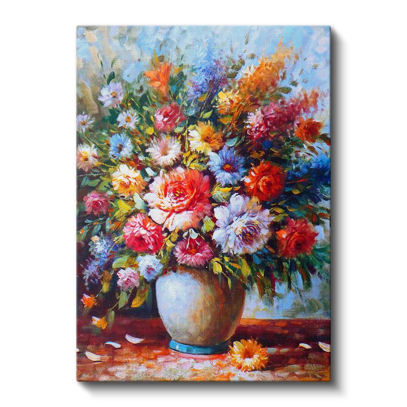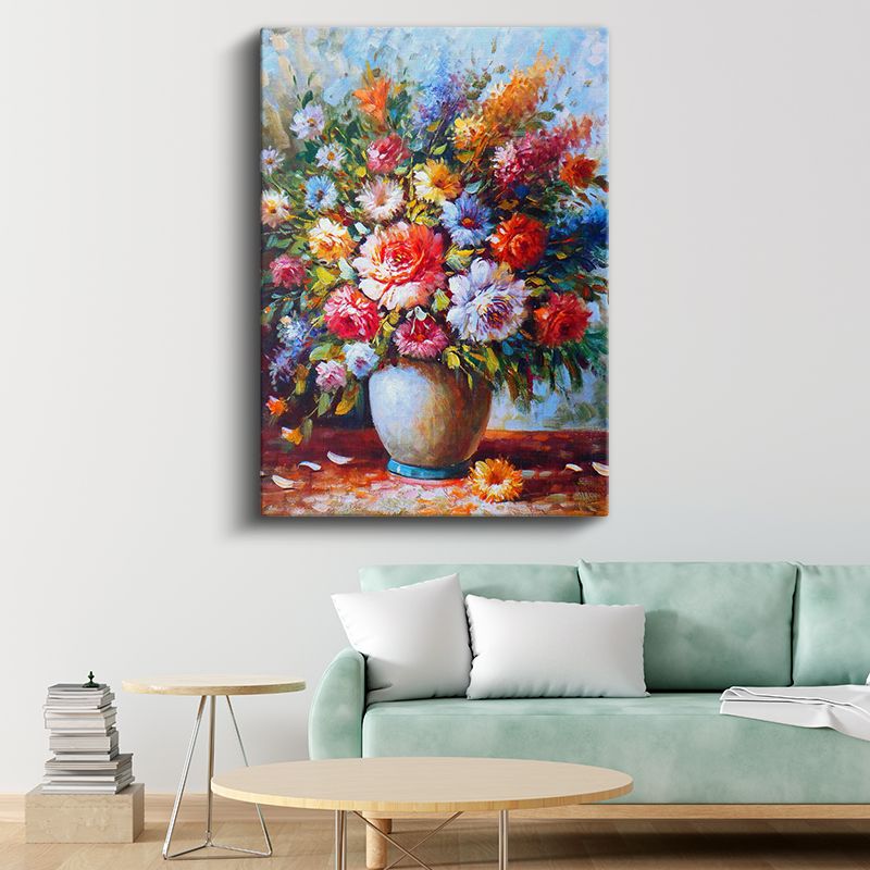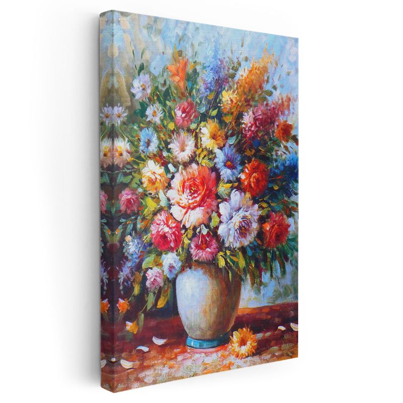 Renkli Çiçek Şöleni - Empresyonist Tarzda Çiçek Aranjmanı Kanvas Tablo