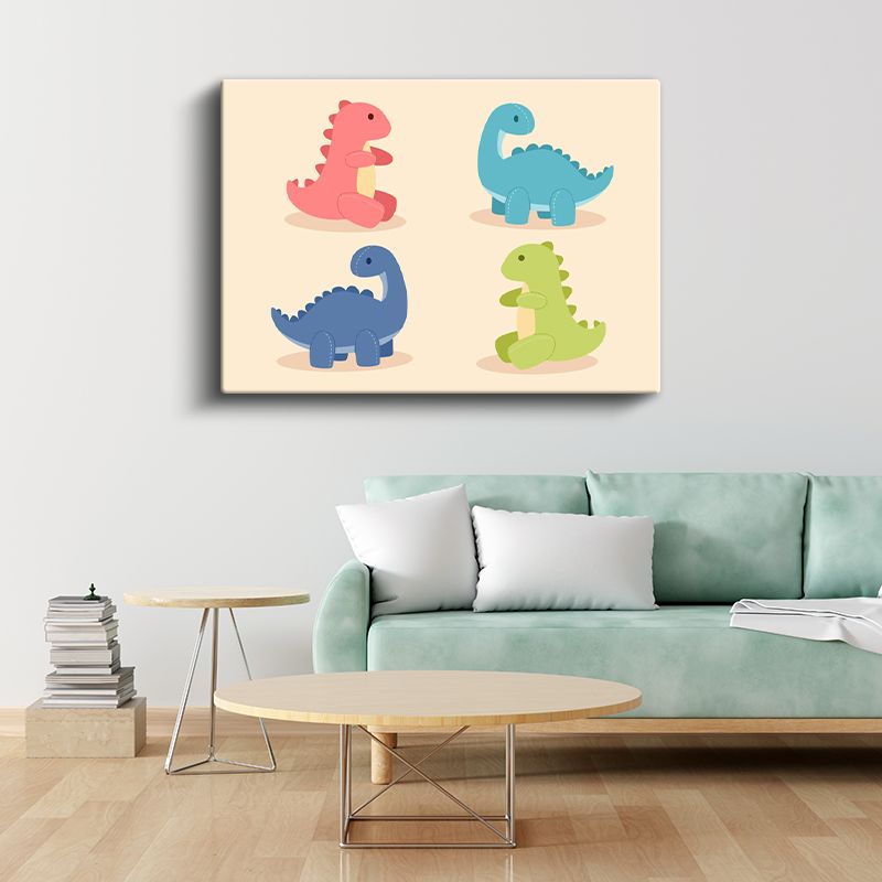 Renkli Dinozorlar - Eğlenceli Dekoratif Kanvas Tablo