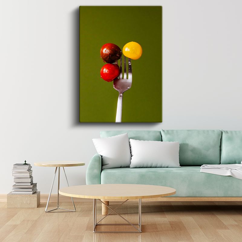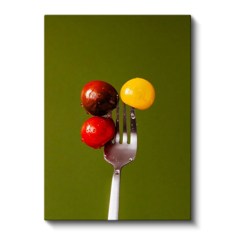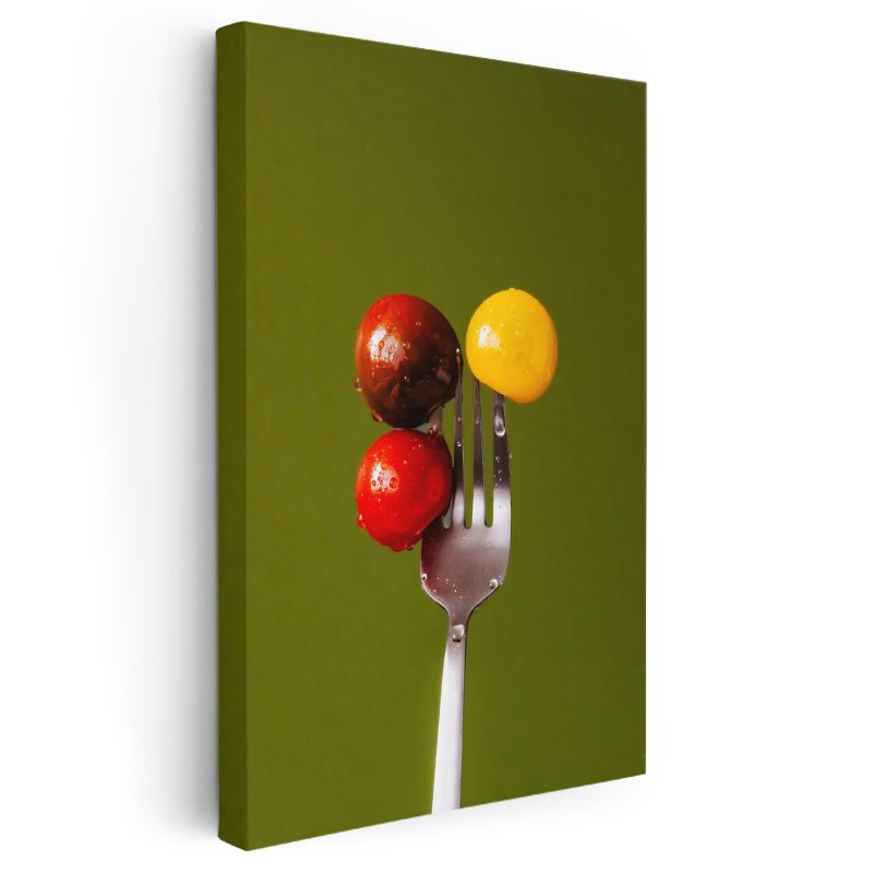 Renkli Domatesler - Çatalda Minimalist Sunum Kanvas Tablo