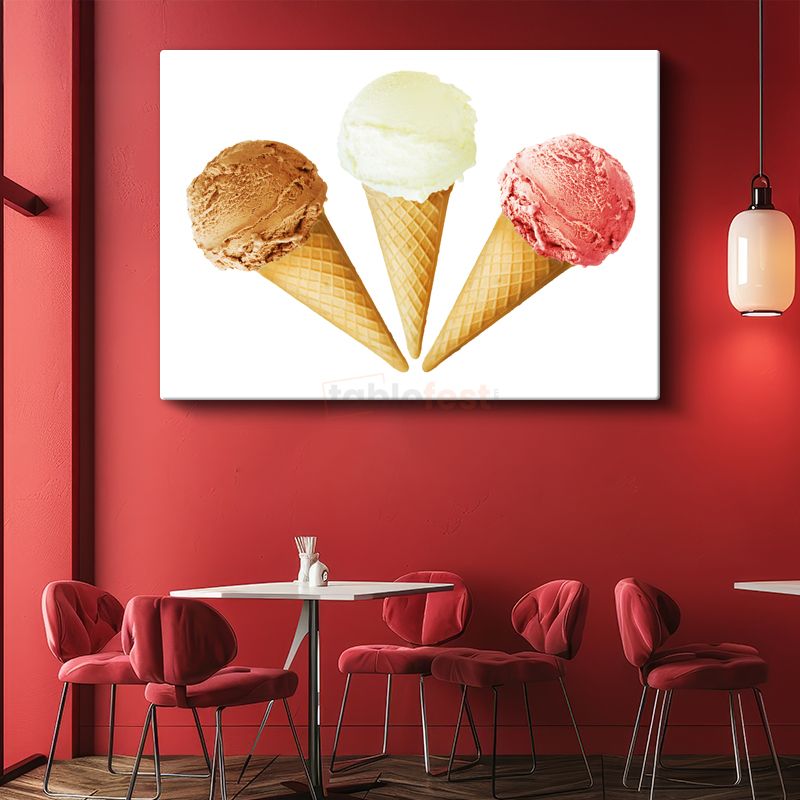 Renkli Dondurma Külahları - Üç Farklı Lezzet Kanvas Tablo