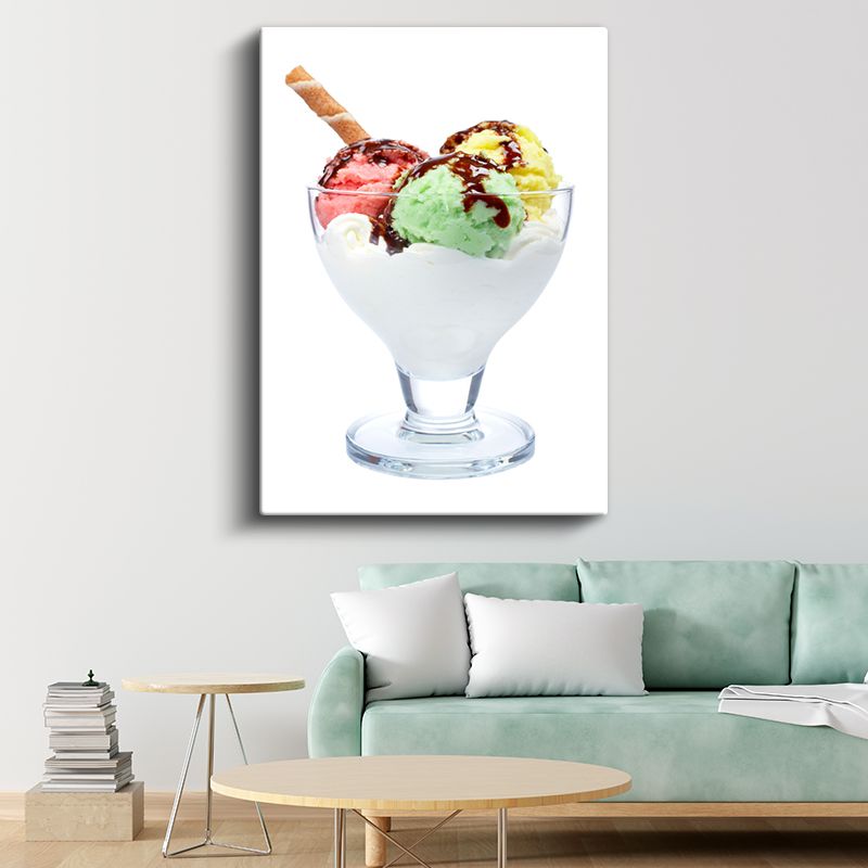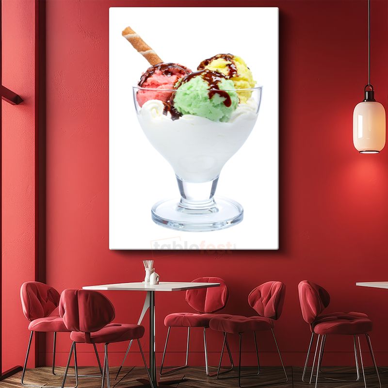 Renkli Dondurma - Üç Renk Bir Arada Külah Kanvas Tablo