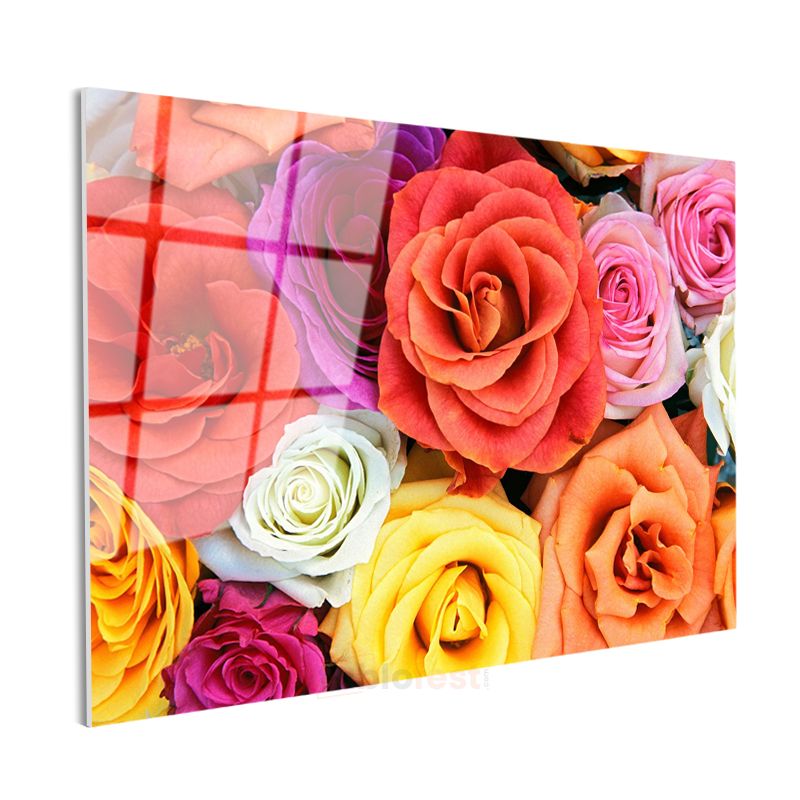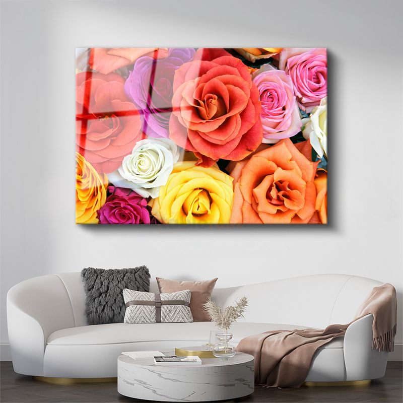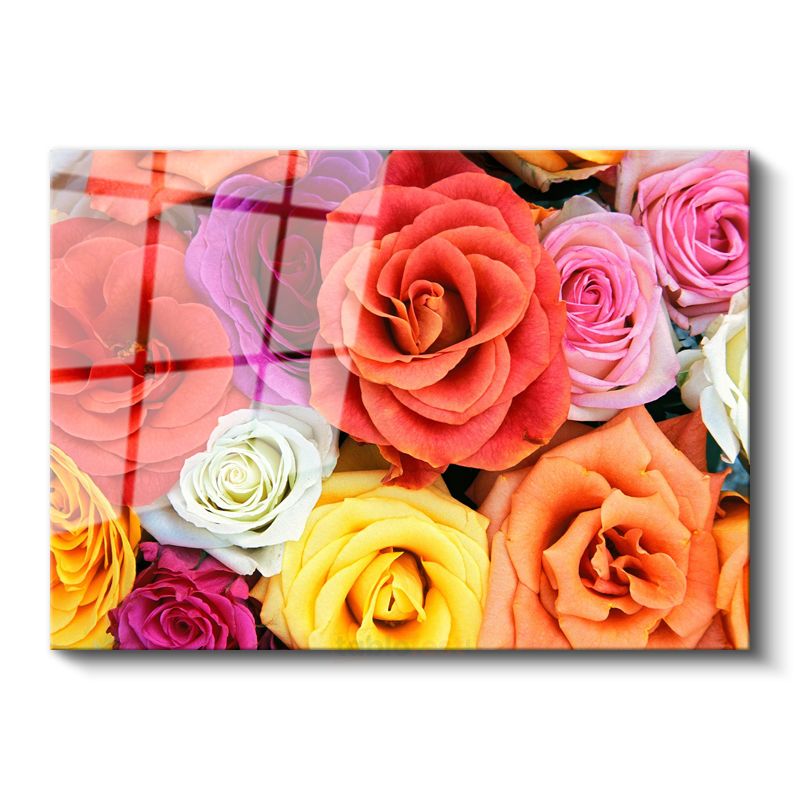 Renkli Gül Buketi - Canlı Tonlarda Çiçek Aranjmanı Cam Tablo