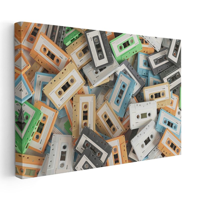 Renkli Kasetler - Nostaljik Müzik Koleksiyonu Kanvas Tablo