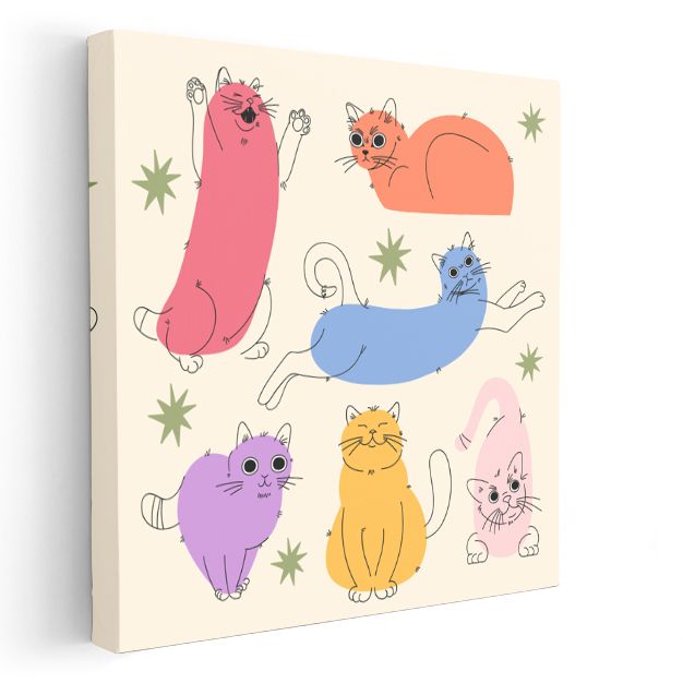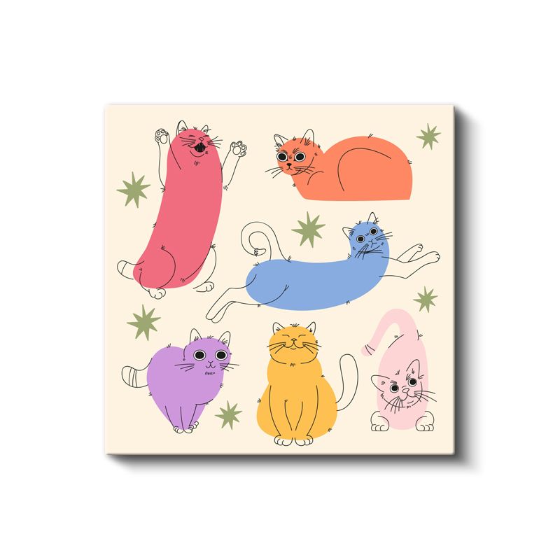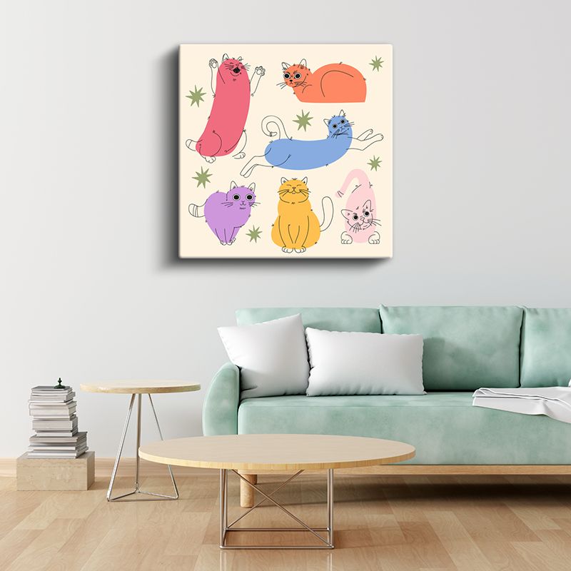 Renkli Kediler - Neşeli Dostlar Kanvas Tablo
