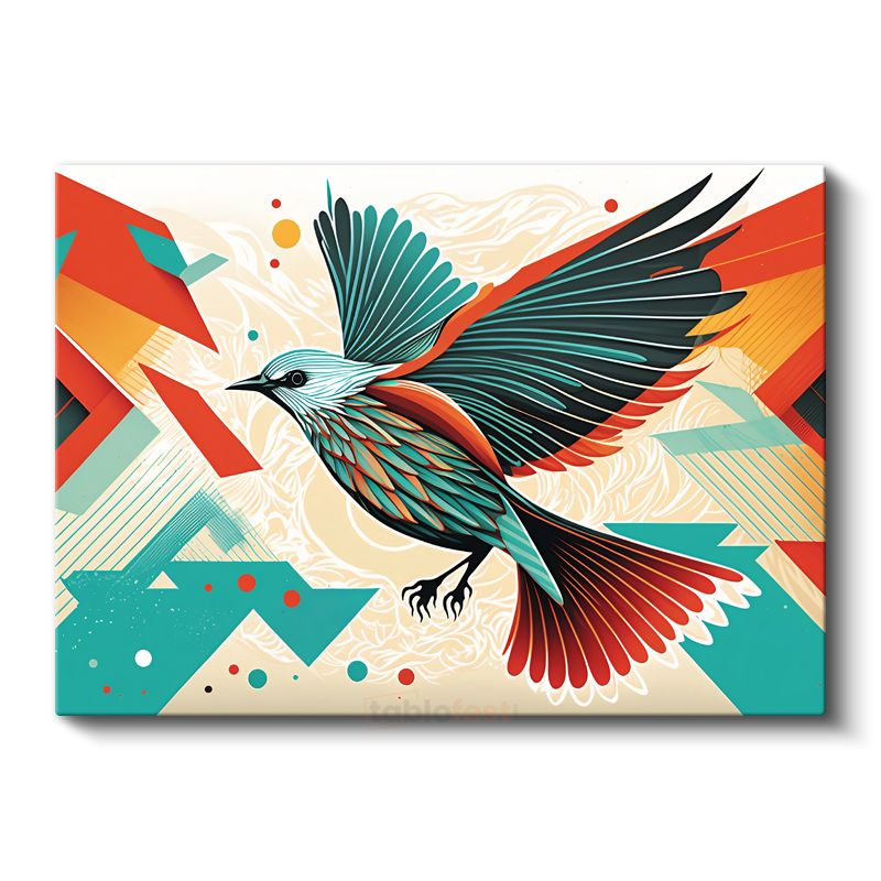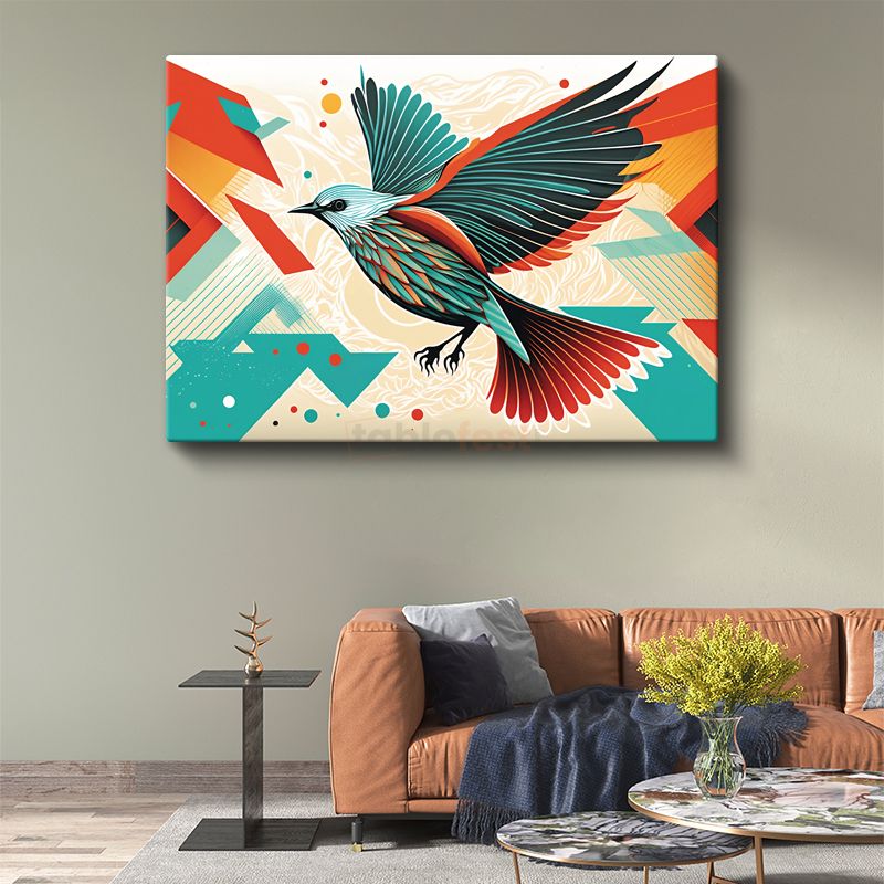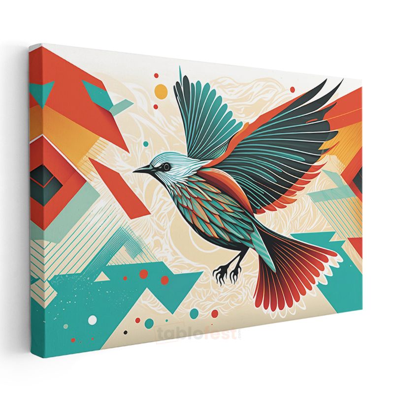 Renkli Kuş - Geometrik Desenli Uçuş Kompozisyonu Kanvas Tablo