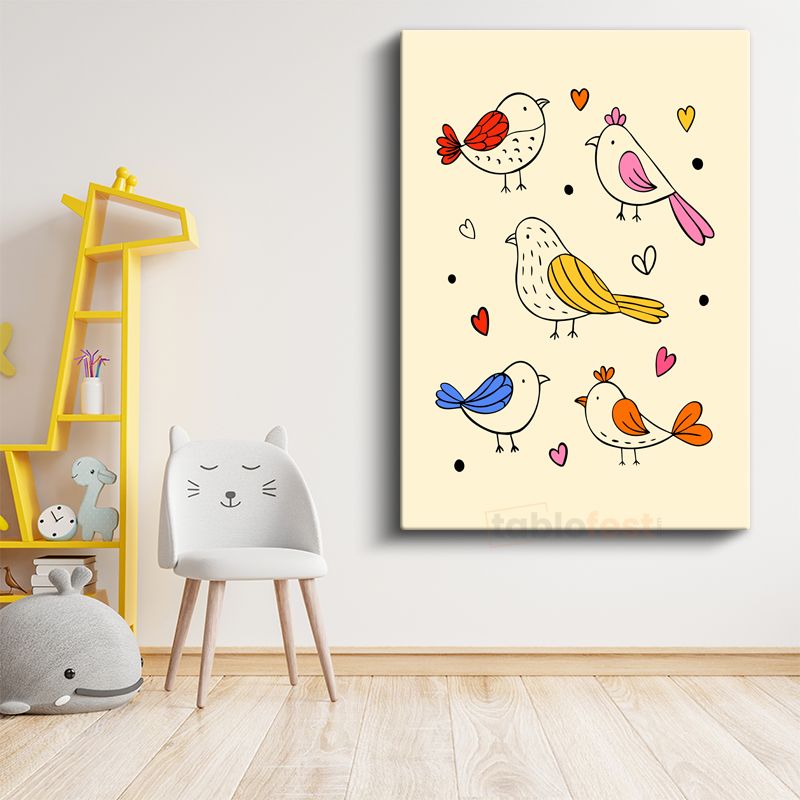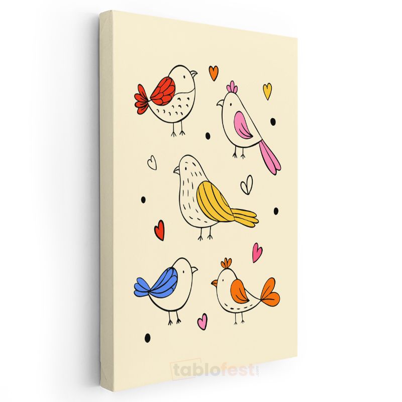 Renkli Kuşlar - Sevgi Dolu Kanatlar Kanvas Tablo