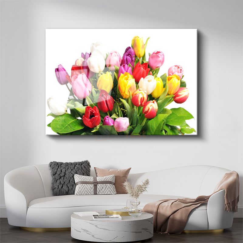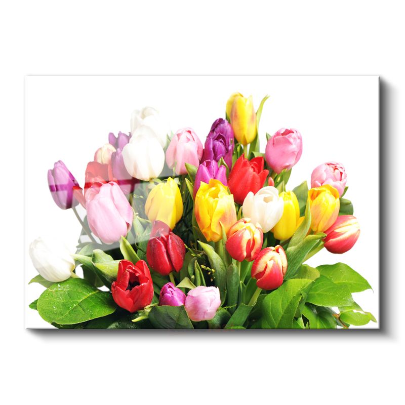 Renkli Lale Buketi - Canlı Bahar Çiçekleri Cam Tablo