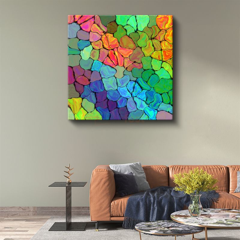 Renkli Mozaik - Canlı Tonlarda Organik Formlar Kanvas Tablo