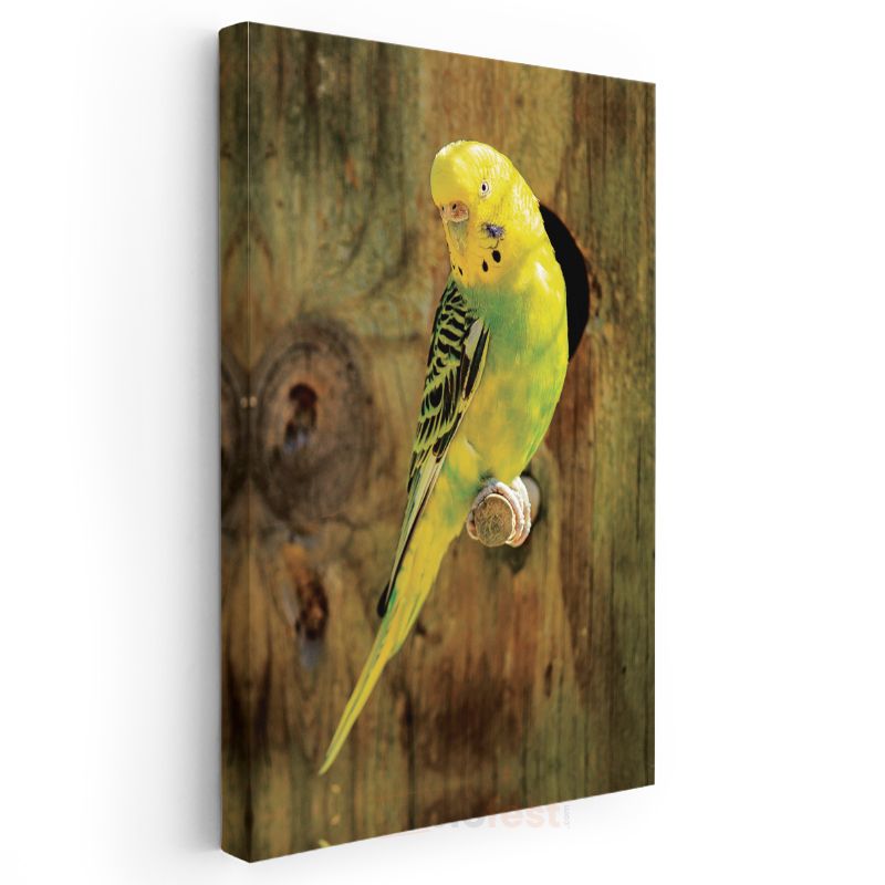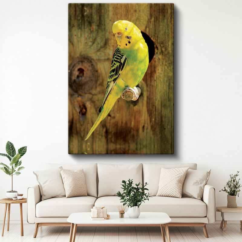 Renkli Muhabbet Kuşu - Sarı-Yeşil Tüyleriyle Minik Papağan Kanvas Tablo