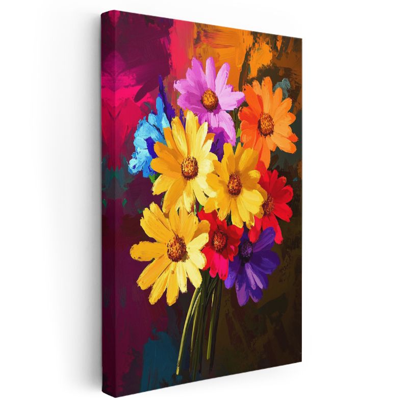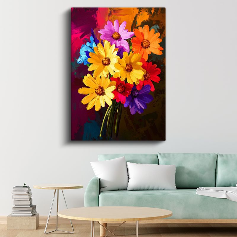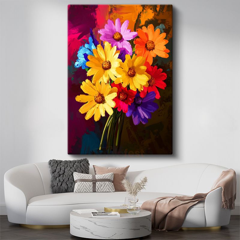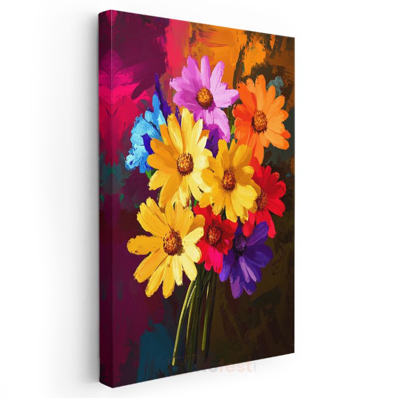 Renkli Papatyalar - Canlı Çiçek Buketi Dekoratif Kanvas Tablo