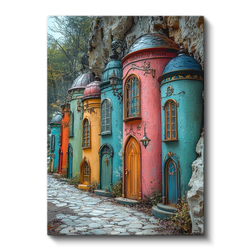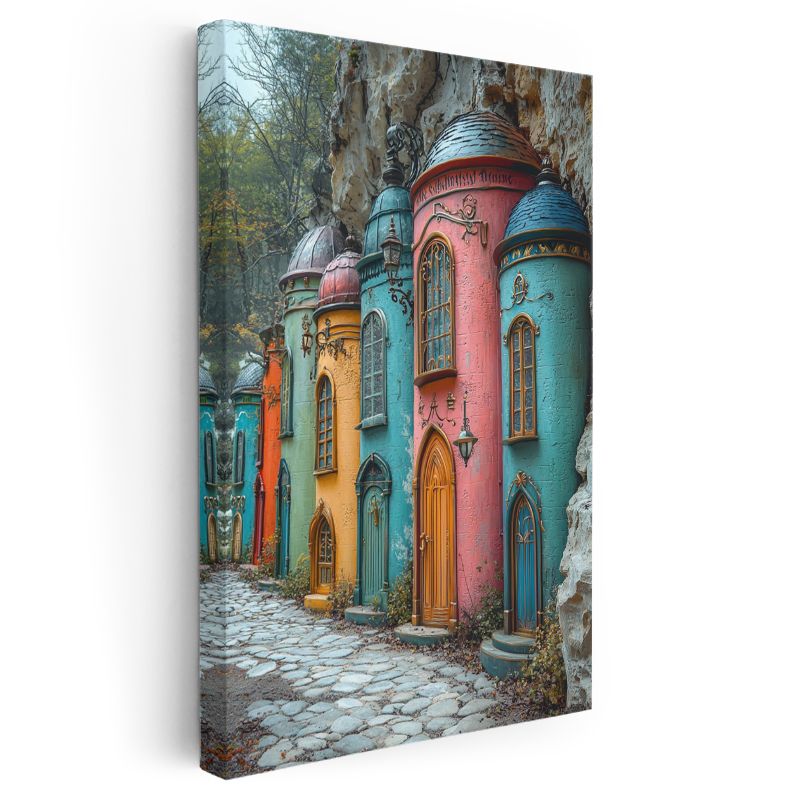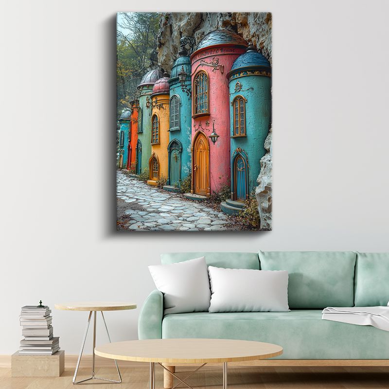 Renkli Rüyalar Sokağı - Masalsı Evlerin Dansı Kanvas Tablo