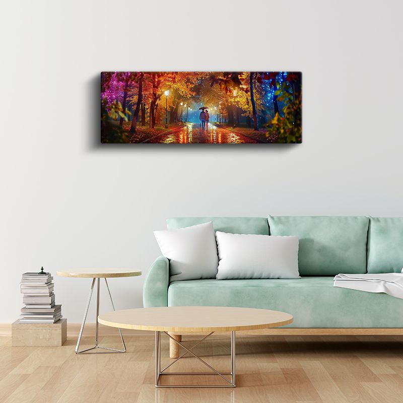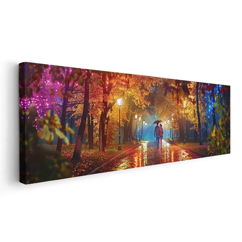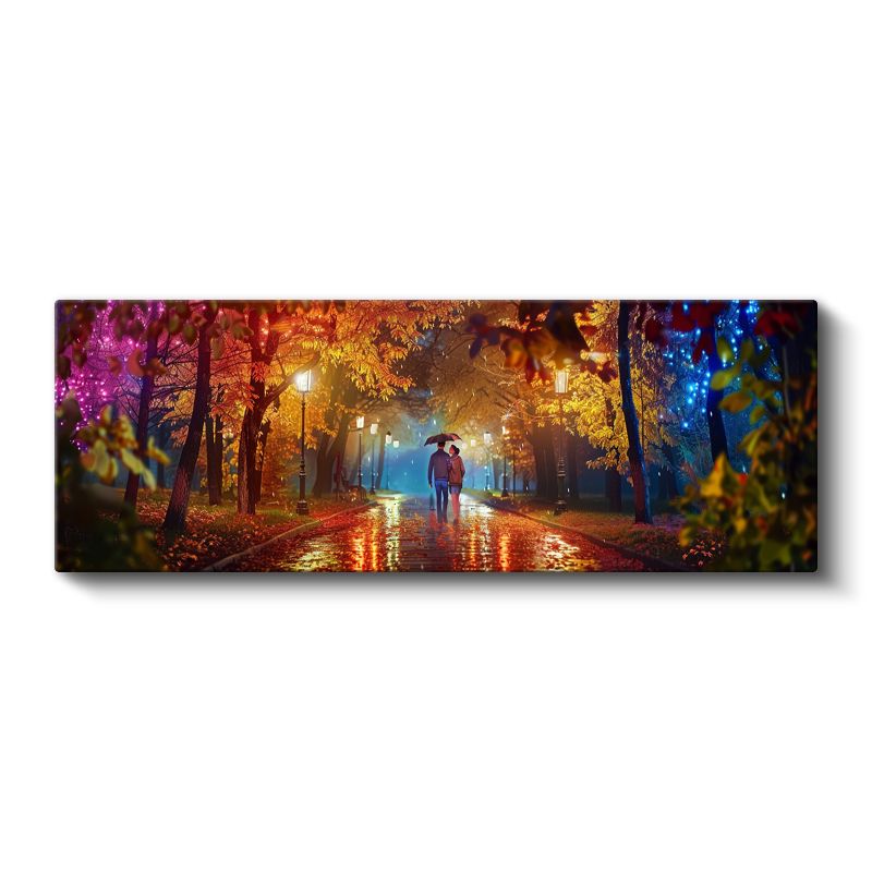 Renkli Sonbahar Gecesi - Yağmurlu Park Yürüyüşü Kanvas Tablo