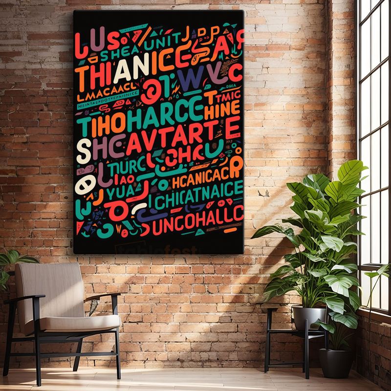 Renkli Tipografi Kolajı - Modern Harf Tasarımı Kanvas Tablo