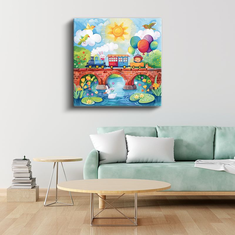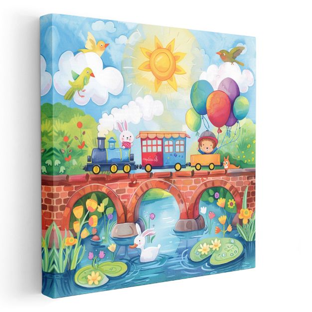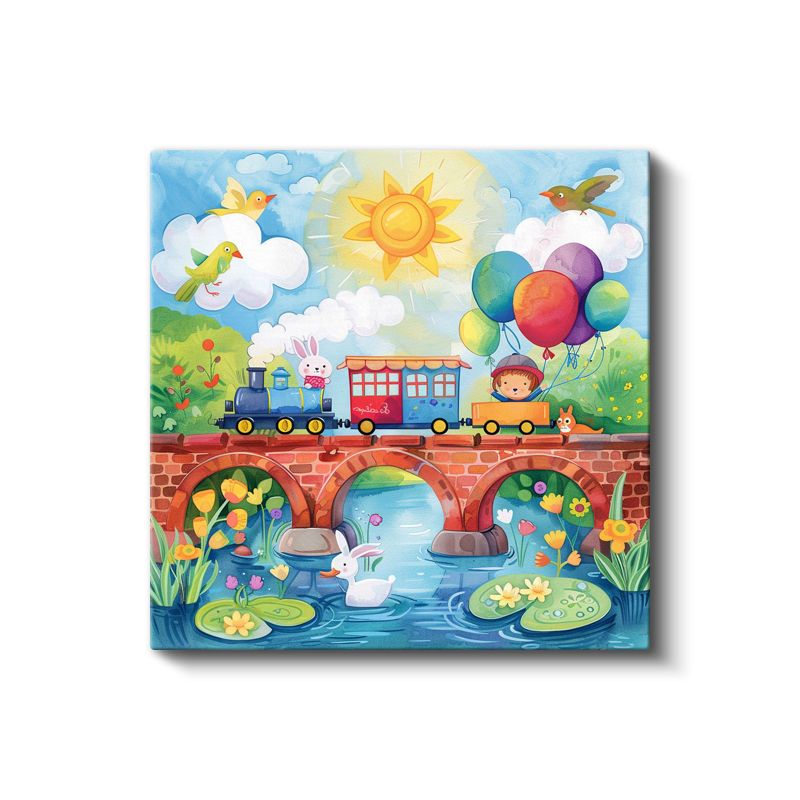Renkli Tren Yolculuğu - Köprü Üzerinde Macera Kanvas Tablo
