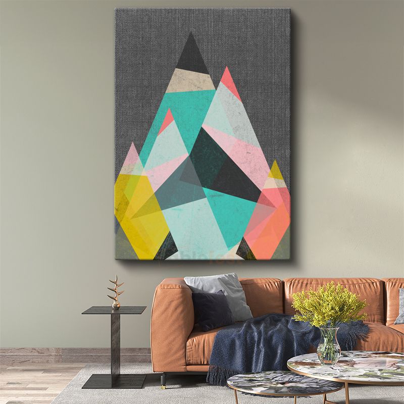 Renkli Üçgenler - Geometrik Dağ Formu Kanvas Tablo