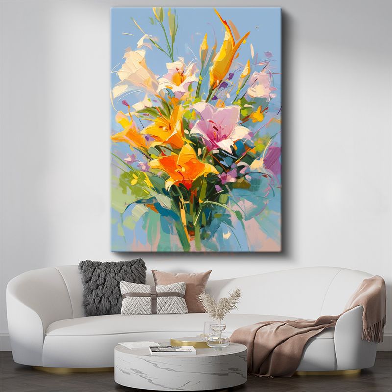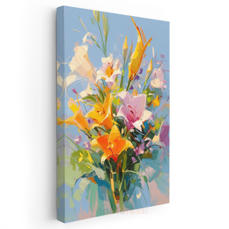 Renkli Zambak Buketi - İzlenimci Çiçek Kompozisyonu Kanvas Tablo