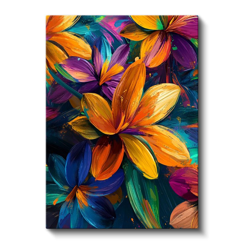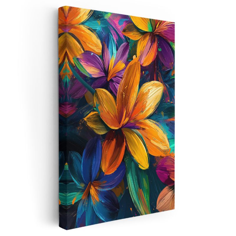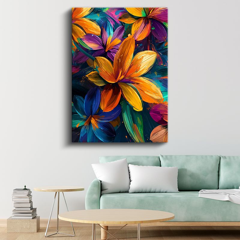 Renkli Zambaklar - Modern Soyut Çiçek Desenleri Kanvas Tablo