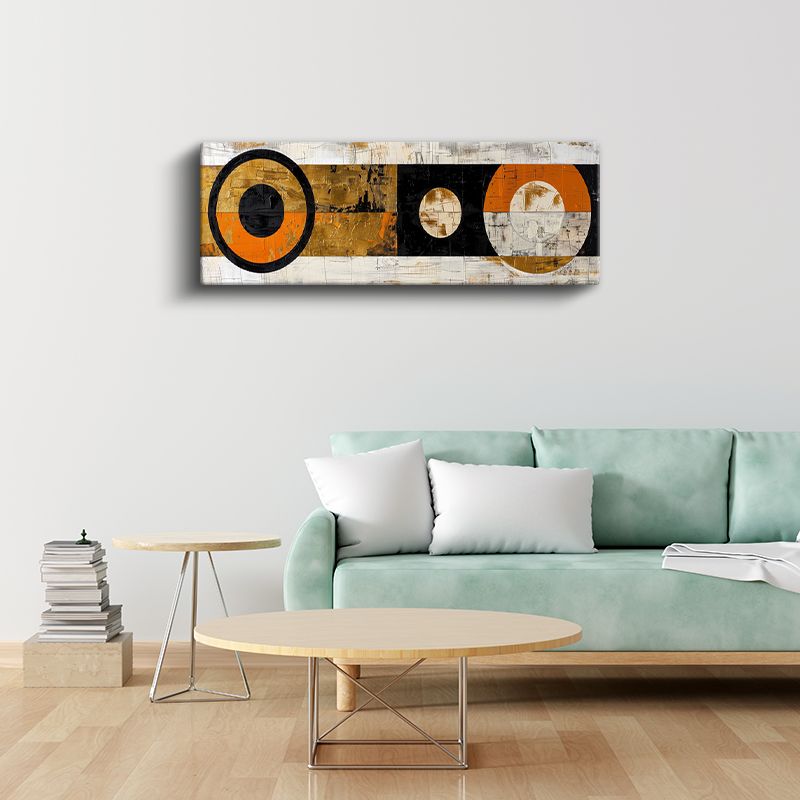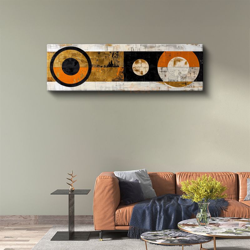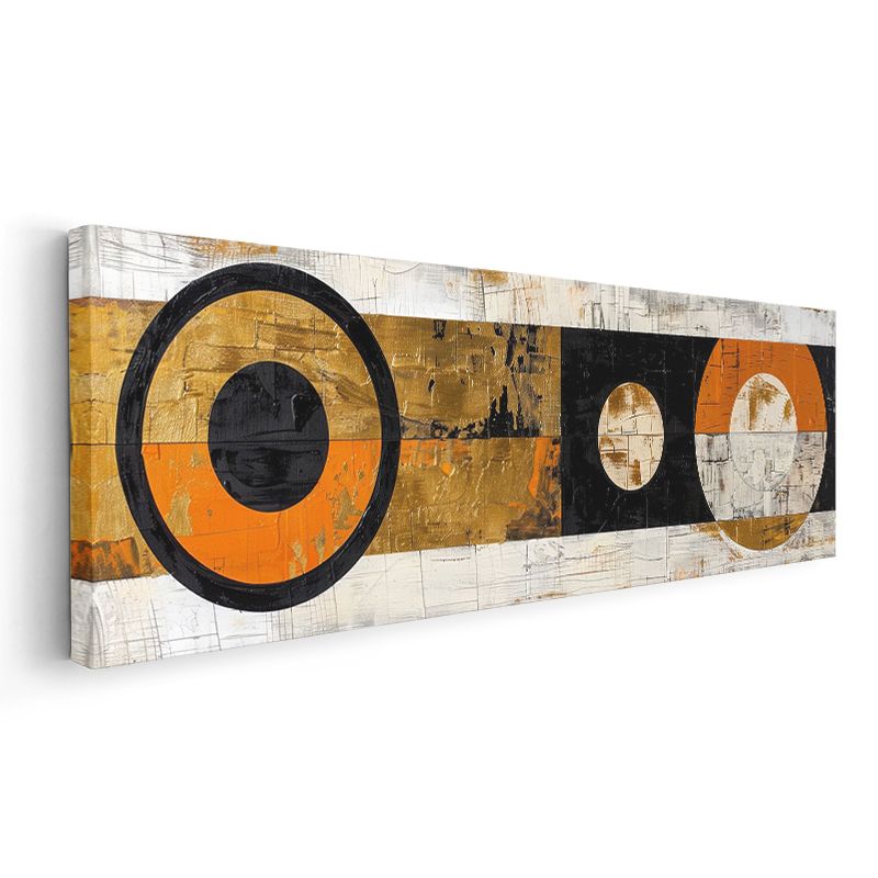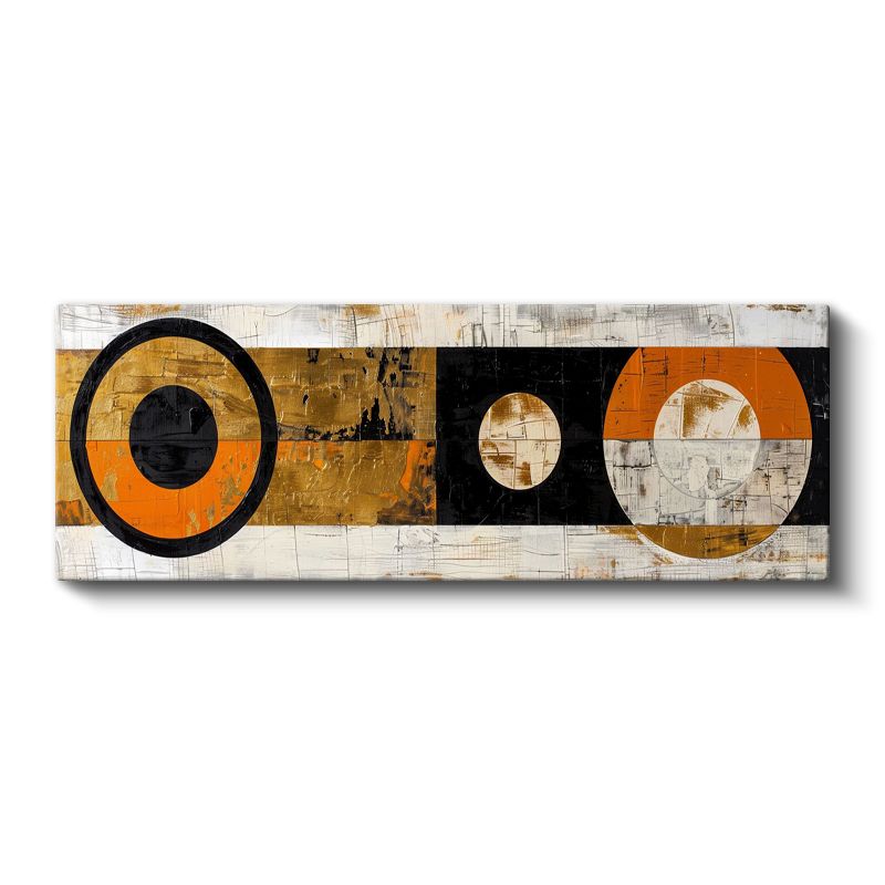 Retro Daireler - Turuncu Siyah Geometrik Soyut Desen Kanvas Tablo