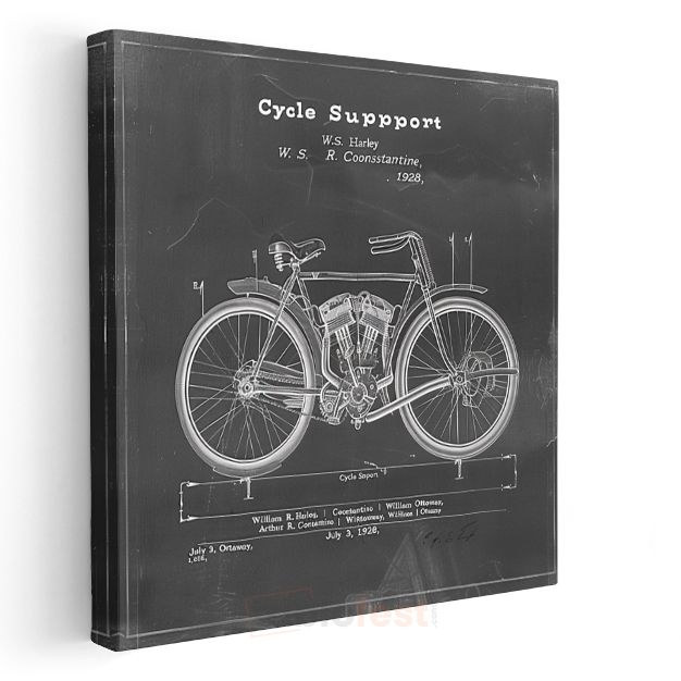 Retro Motosiklet Çizimi - 1928 Mühendislik Tasarımı Kanvas Tablo