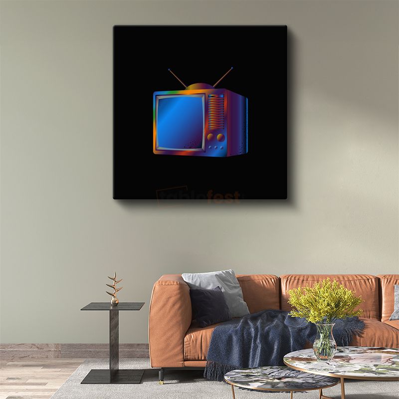 Retro Teknoloji - Neon Efektli Televizyon Kanvas Tablo
