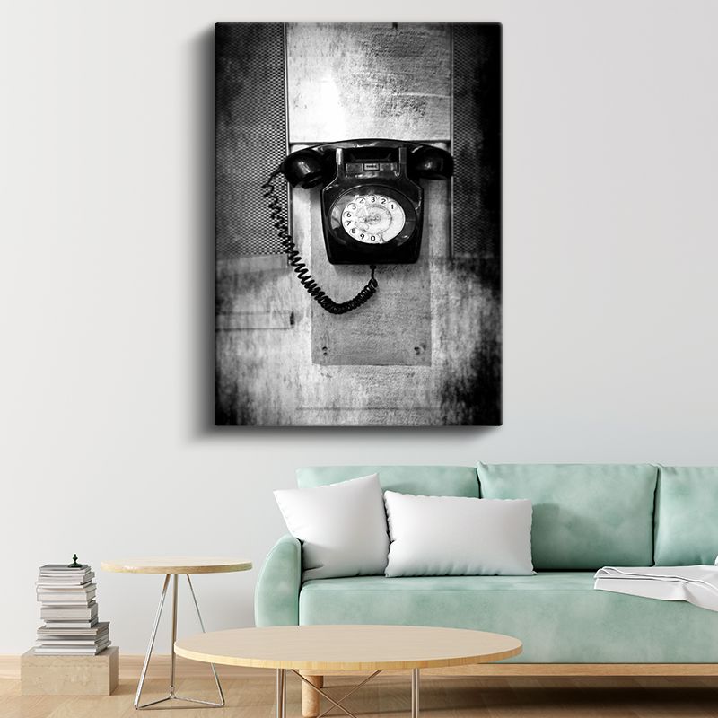Retro Telefon - Siyah Ahizeli Duvar Telefonu Kanvas Tablo