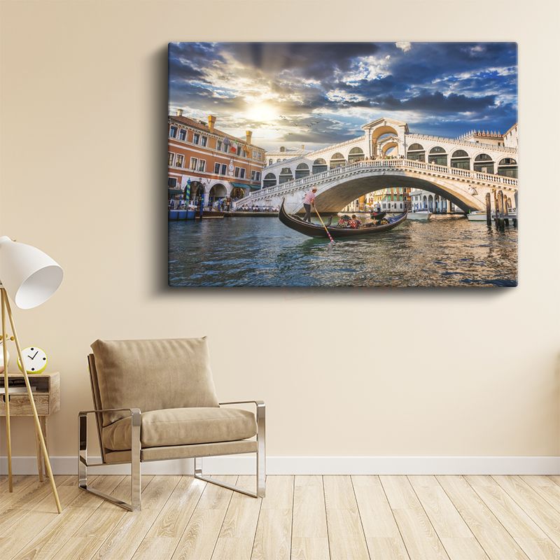 Rialto Köprüsü - Venedik Kanallarında Gün Batımı Kanvas Tablo