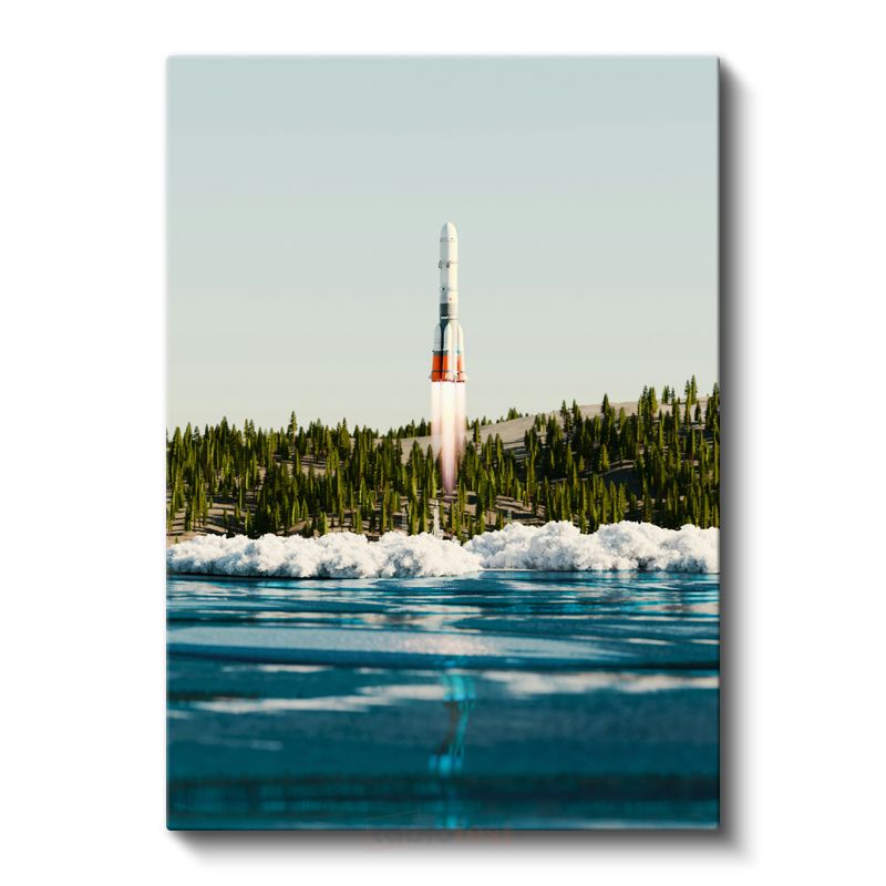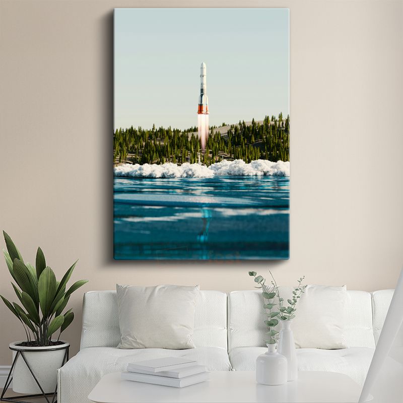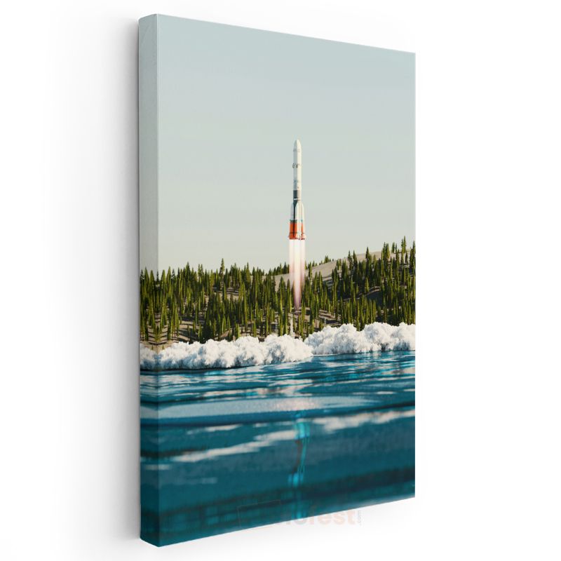 Roket Fırlatma - Su Kenarından Yükselen Uzay Roketi Kanvas Tablo