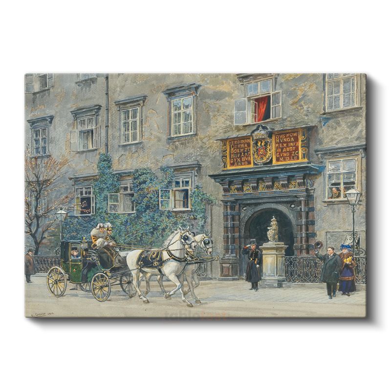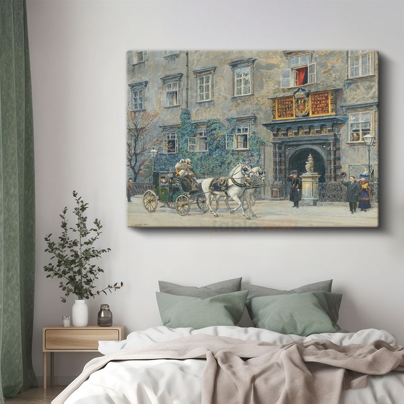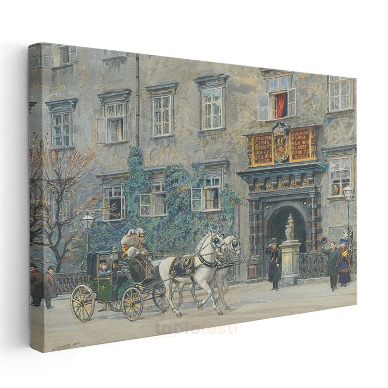 Rudolf von Alt - Viyana'da Tarihi Bina Önünde Atlı Araba Kanvas Tablo