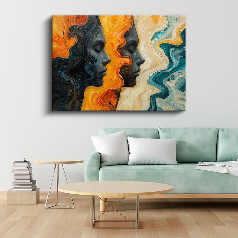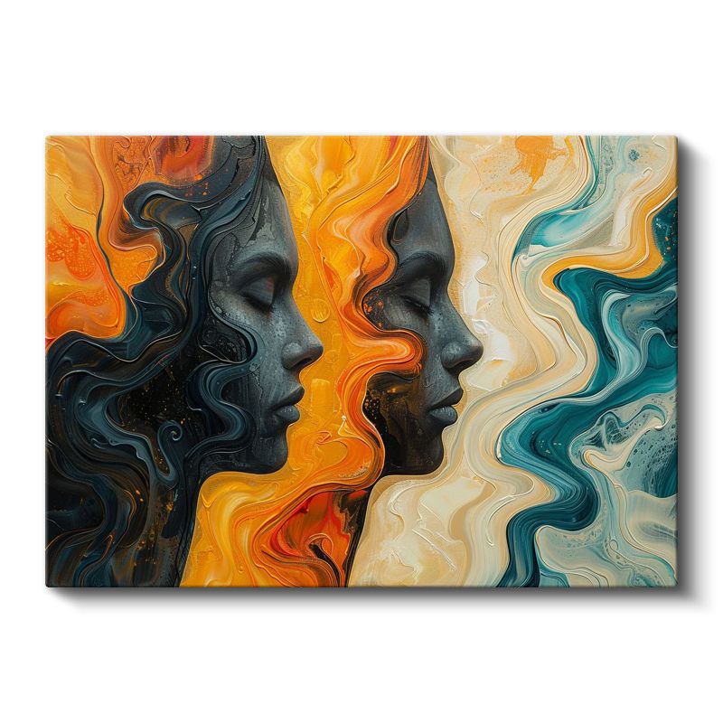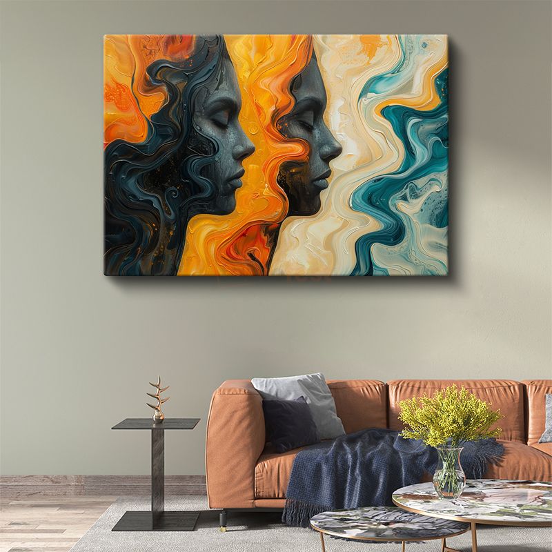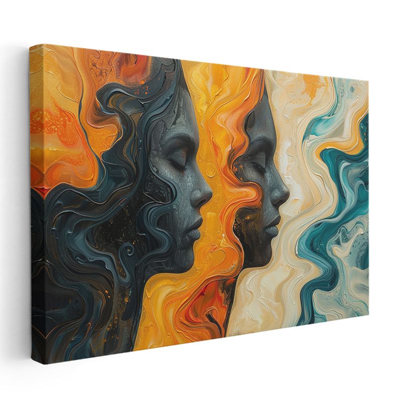 Ruhsal Portreler - Akan Renklerle Soyut Yüz Siluetleri Kanvas Tablo