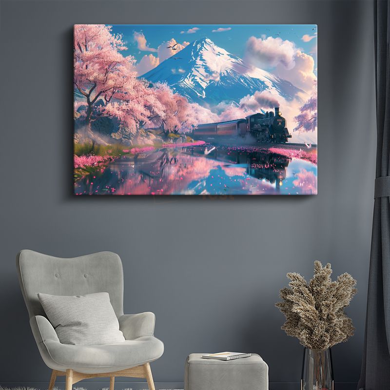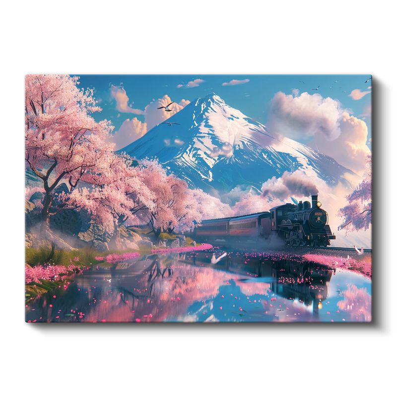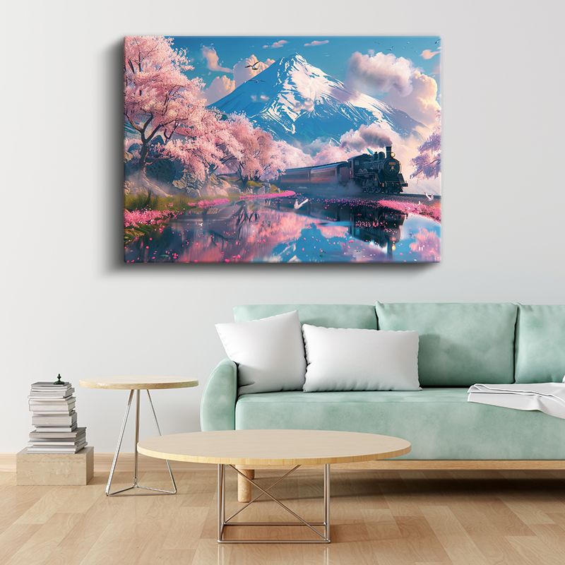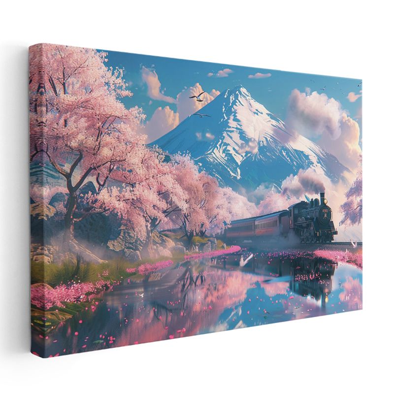 Rüya Treni - Kiraz Çiçekleri Arasında Mistik Yolculuk Kanvas Tablo