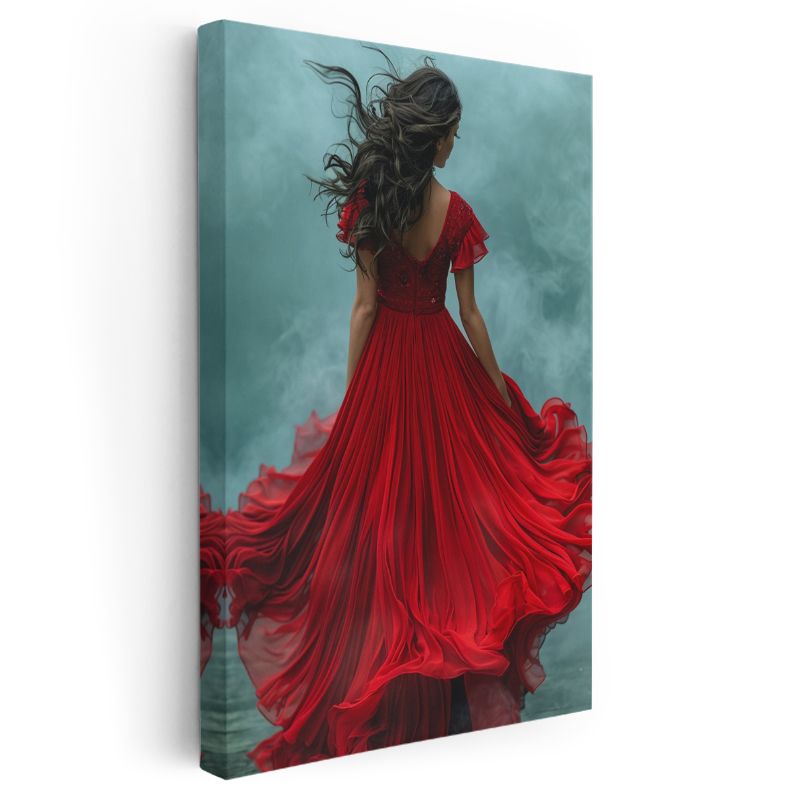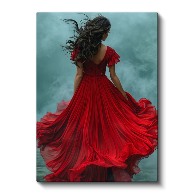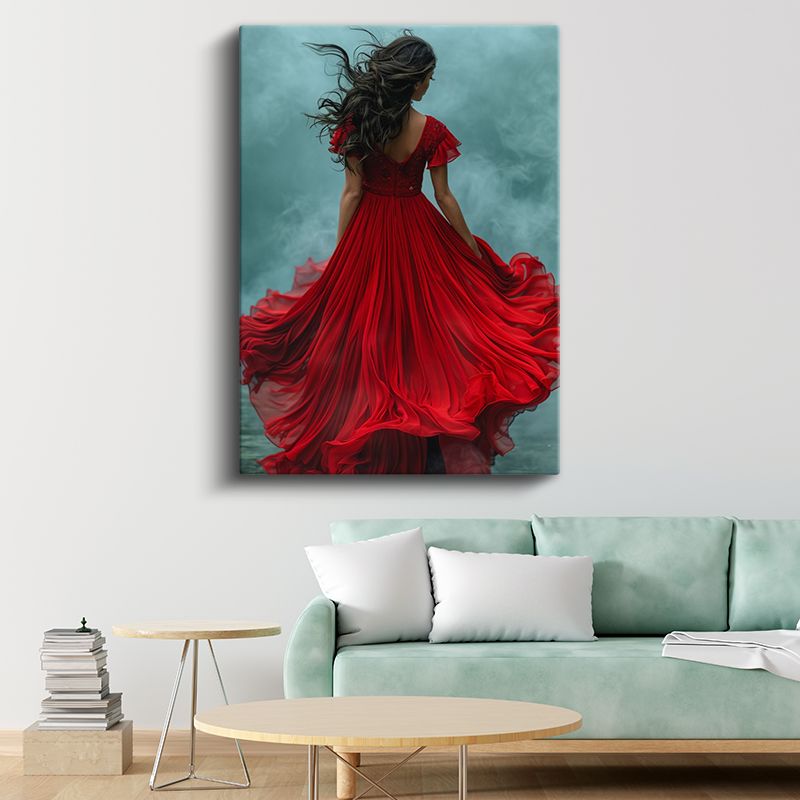 Rüzgarın Melodisi - Kırmızı Elbiseli Zarafet Kanvas Tablo