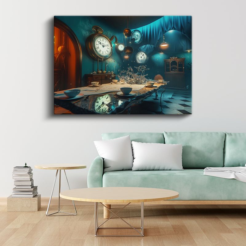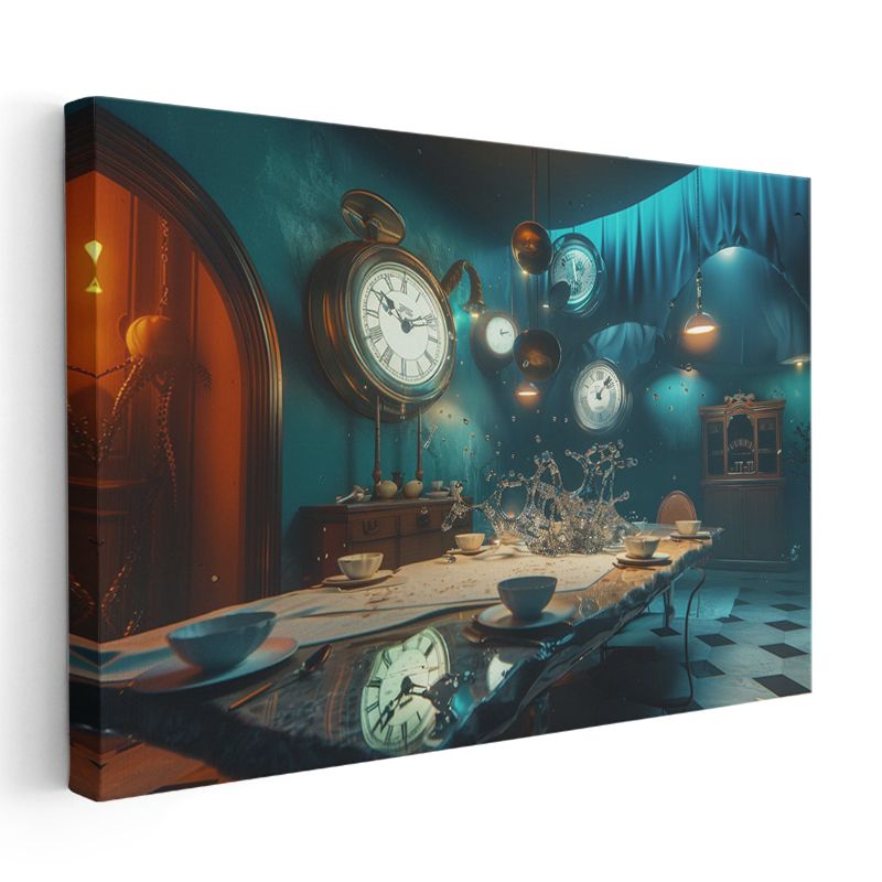 Saat Odası - Eriyen Zaman Masası Kanvas Tablo